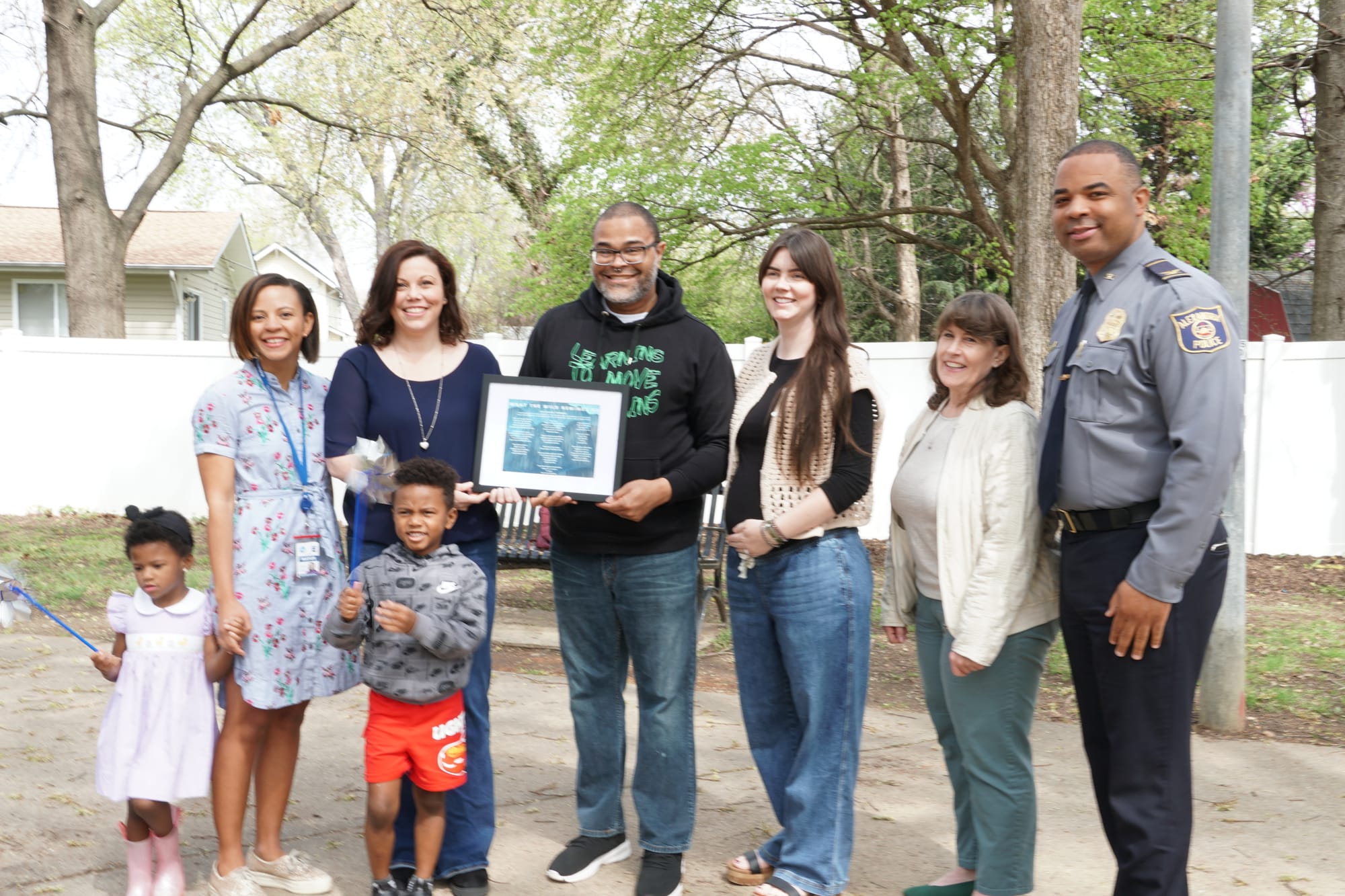 At the park, Gaskins read a formal proclamation on behalf of the Alexandria City Council, citing sobering local statistics: the city's Child Protective Services hotline received 1,449 referrals last fiscal year involving allegations of neglect, mistreatment, physical, emotional or sexual abuse and exploitation. The Children's Advocacy Center Program, facilitated by the Center for Alexandria's Children, reviewed 169 cases of severe child abuse and forensically interviewed 76 children. In fiscal year 2025, the city's Sexual Assault Center provided direct services to 77 children and their families who experienced childhood sexual abuse.