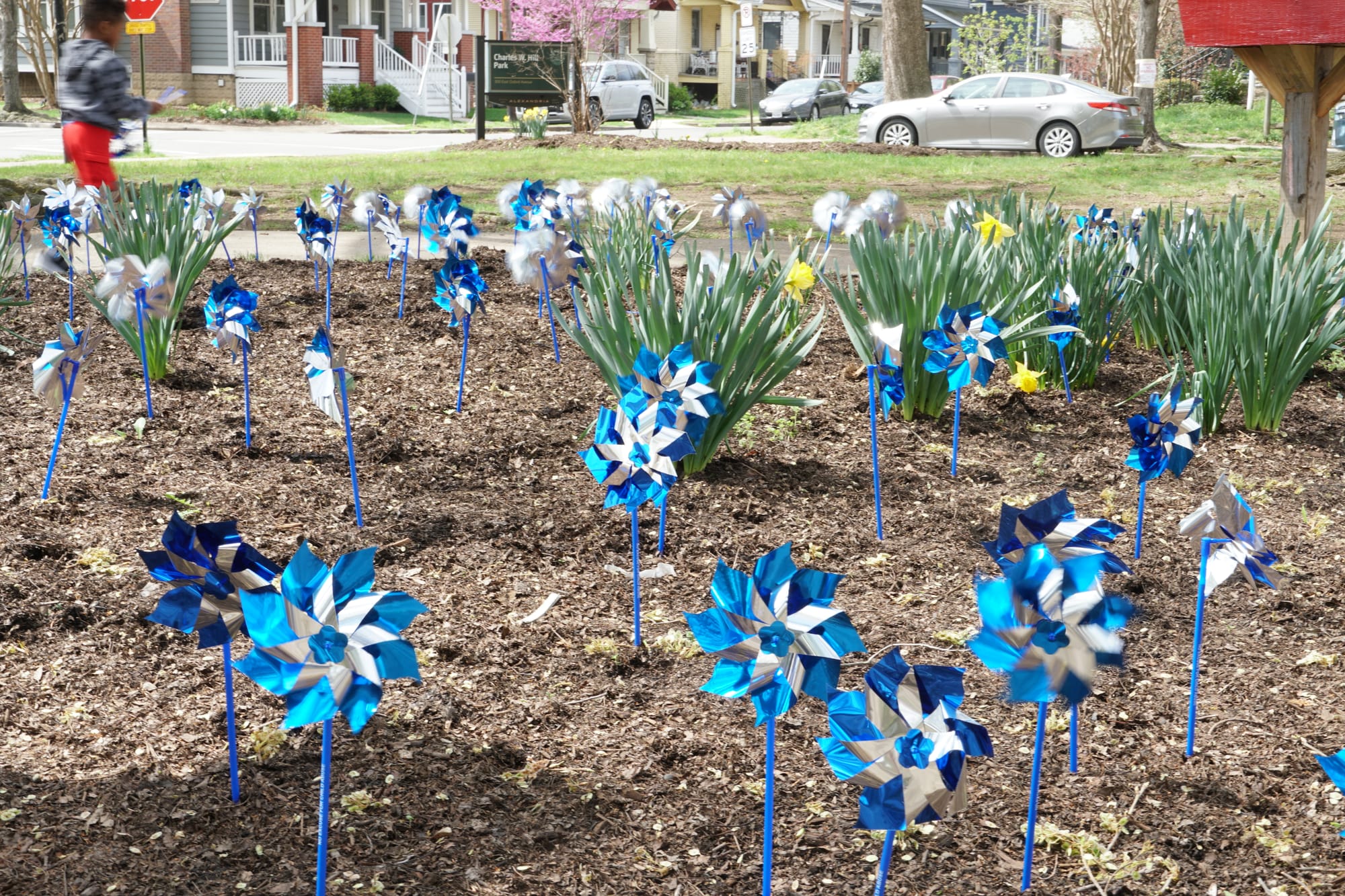 After the formal program, attendees gathered to plant pinwheels across the park grounds. The pinwheel is the nationally recognized symbol of child abuse prevention, chosen for its association with the joy and freedom of childhood.