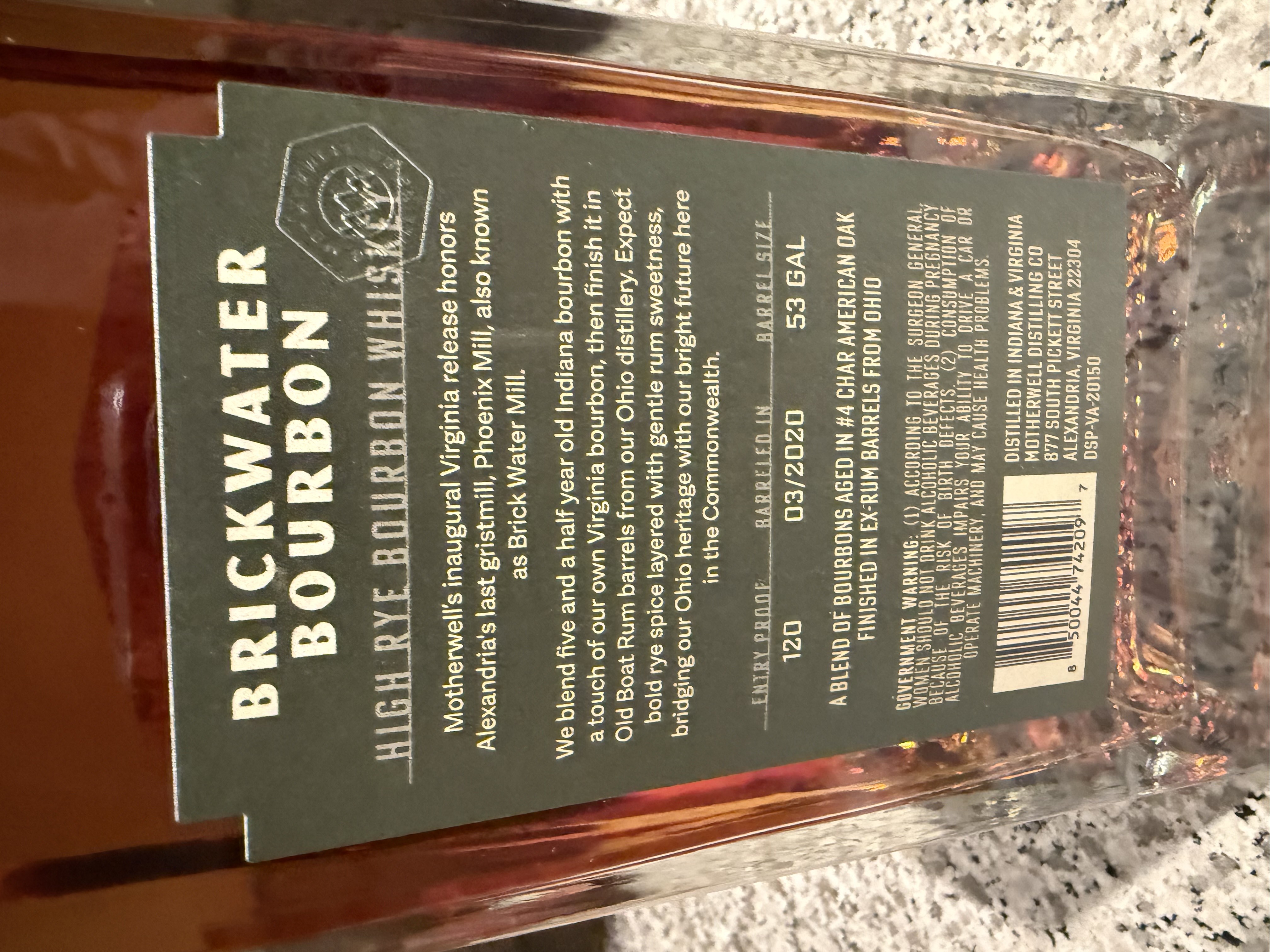 The 100-proof high-rye bourbon blends 5 1/2-year-old Indiana whiskey with Virginia-distilled bourbon, then finishes in rum barrels from Motherwell’s Ohio distillery — bridging both locations in a single bottle.