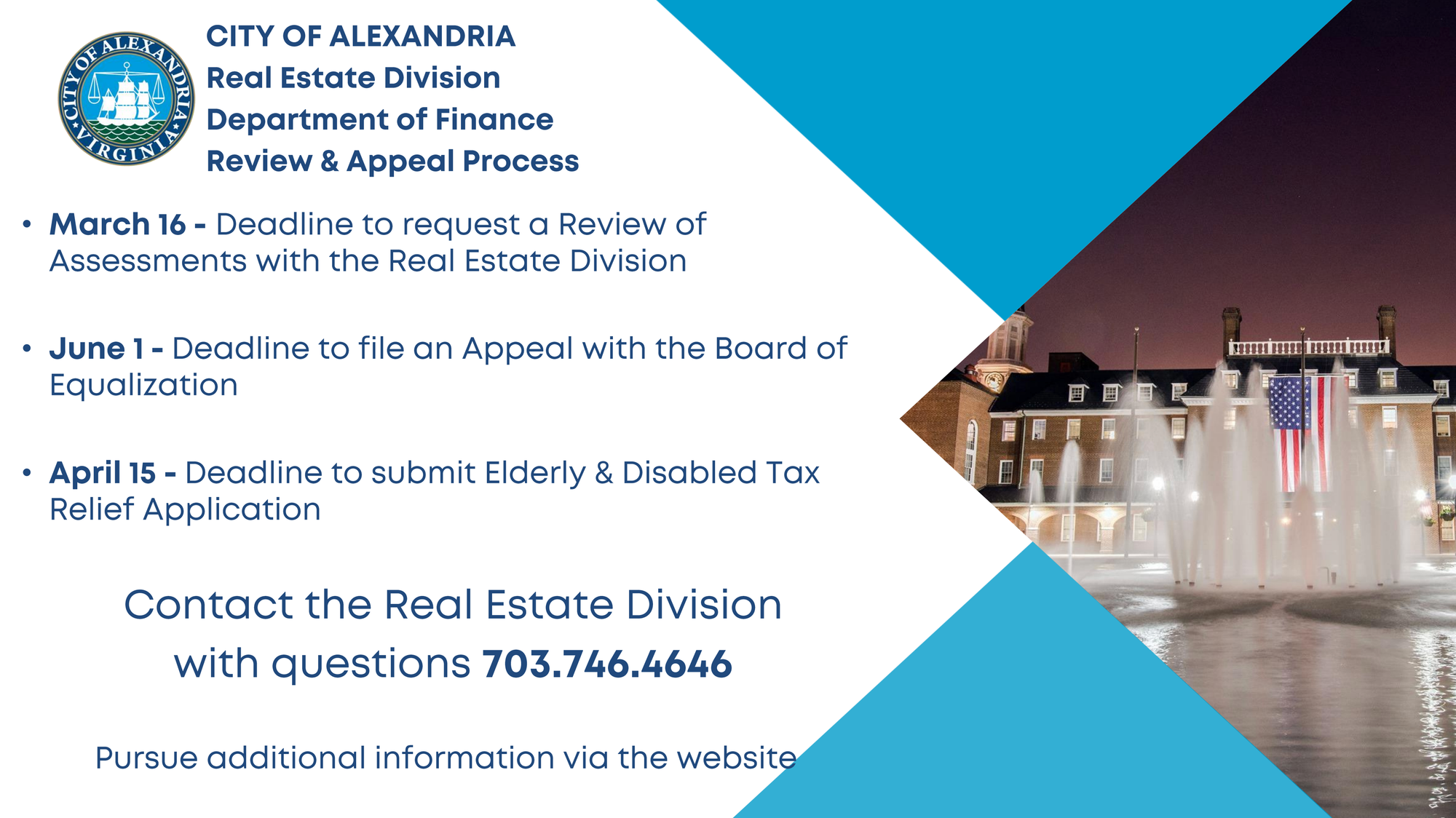 Assessment notices began mailing on Wednesday and are available online now at realestate.alexandriava.gov. Property owners have two opportunities to contest their assessment.