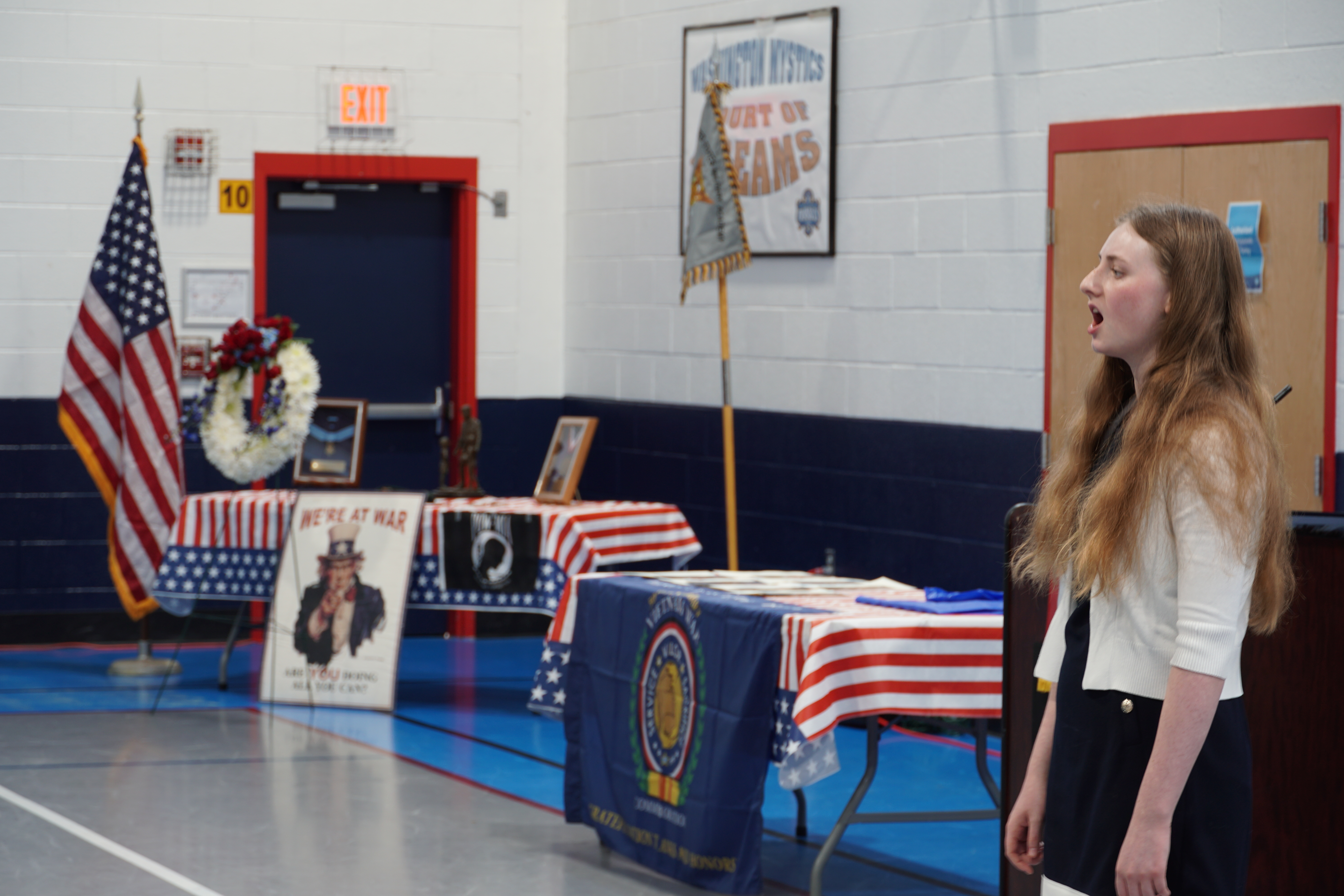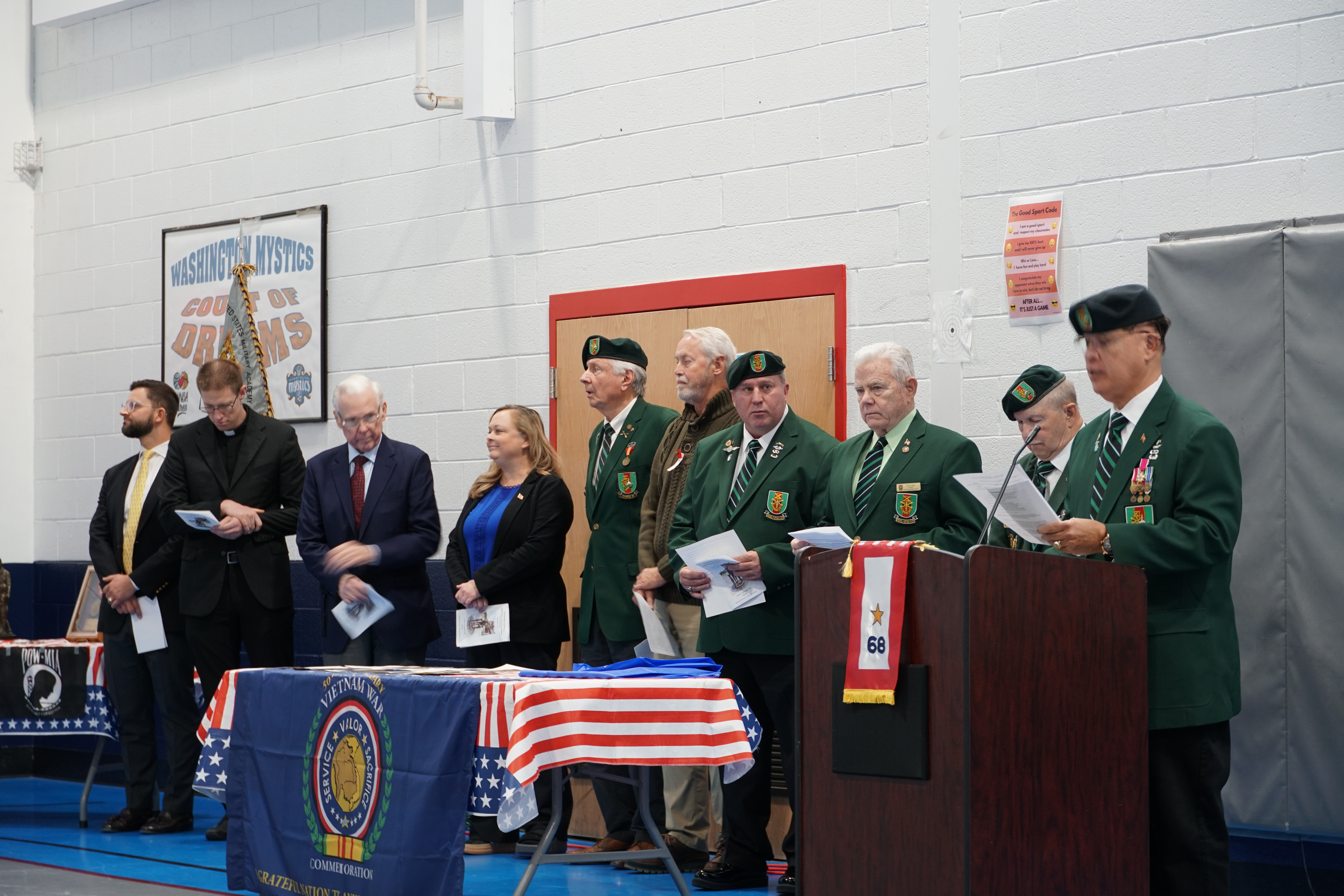 Deacon Steve Dixon from St. Rita Parish delivered the invocation and closing prayer, while Catherine Cassidy from Bishop Ireton High School performed the national anthem and patriotic songs. The St. Rita American Heritage Girls Troop 1381 led the Pledge of Allegiance.