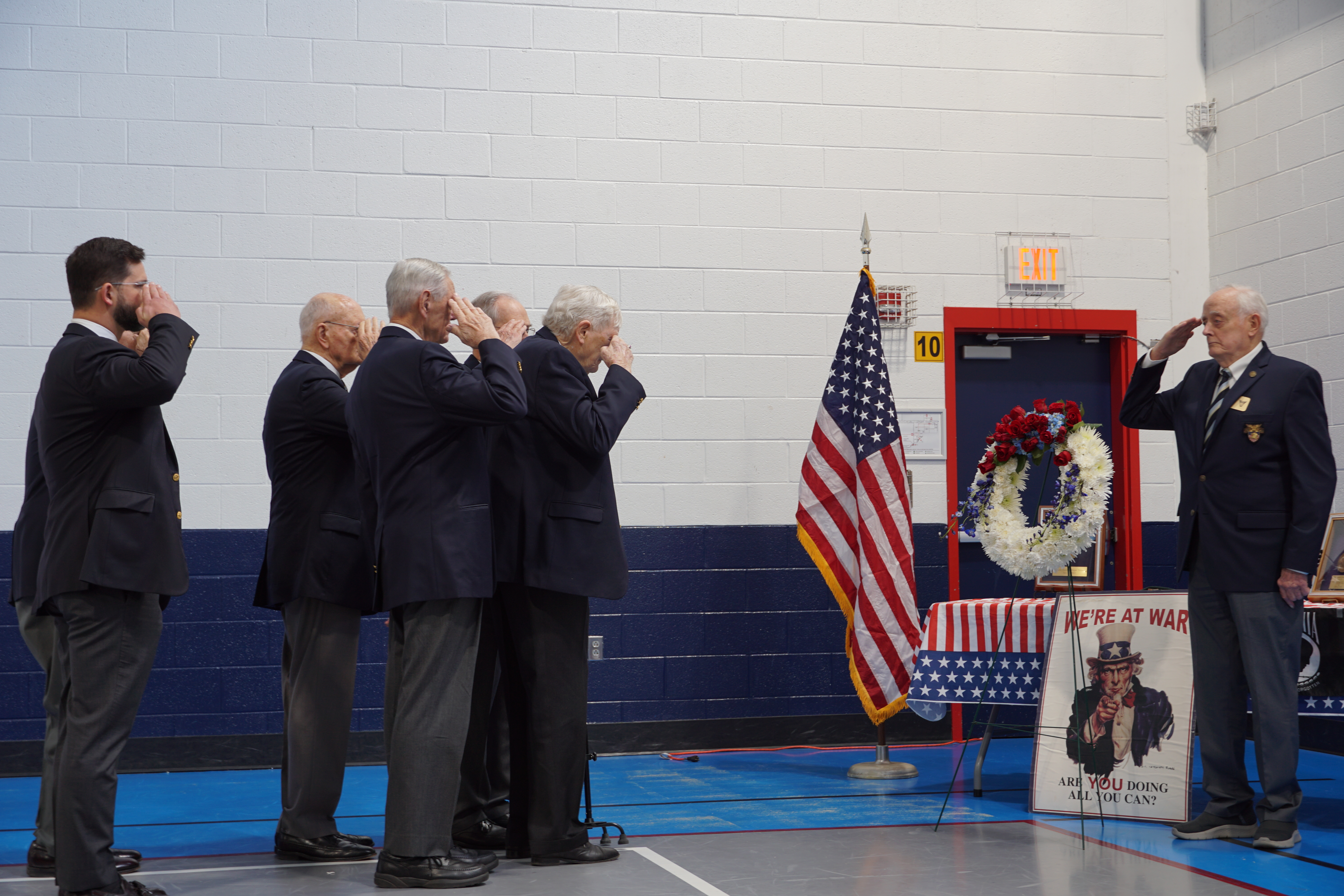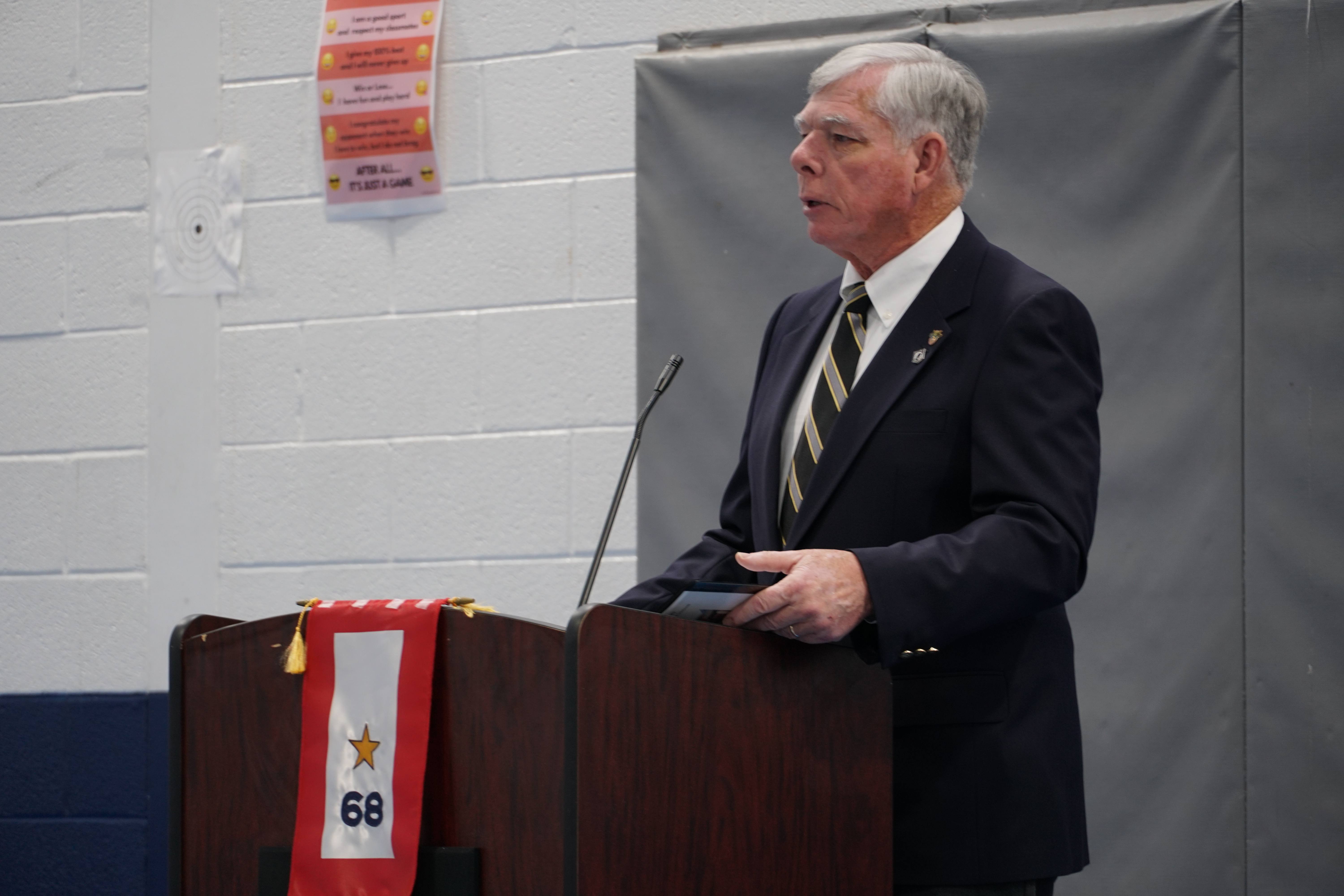 The ceremony recognized all branches of the military, with veterans standing as their service was called. The recognition included the Army, which celebrated its 250th anniversary this year, and the Marine Corps, which celebrated its birthday the day before the ceremony, along with the Navy, Air Force, Space Force, and Coast Guard.