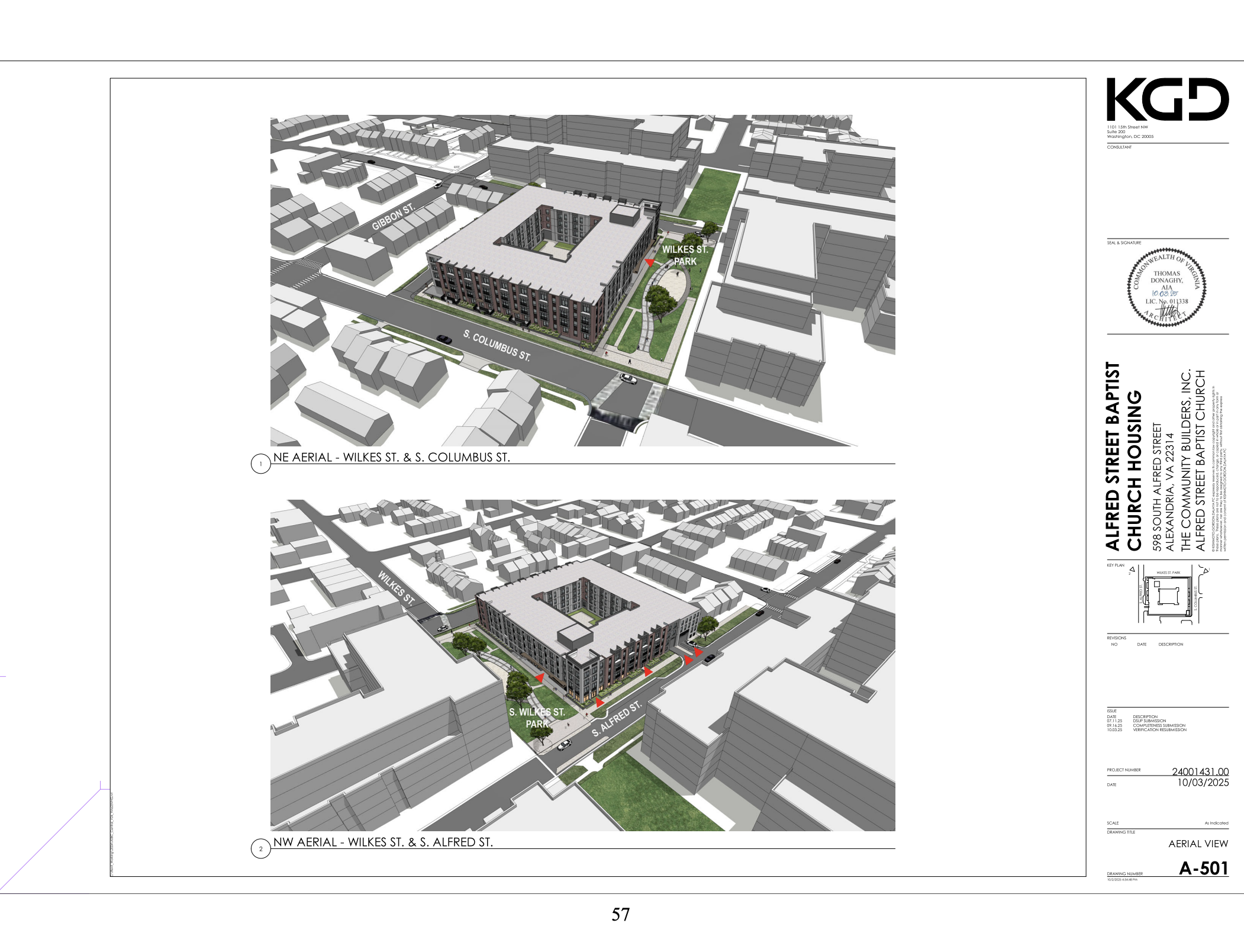 The church purchased 77 units in Old Town West in 2009 that were developed as part of a 1970s urban renewal project. The church owns units at three properties: 901 Wolfe Street (22 units), 598 S. Alfred St. (34 units), and 601 S. Alfred Street (19 units). This project would redevelop the 34 units at 598 S. Alfred St., with subsequent phases for the other properties to be processed later.