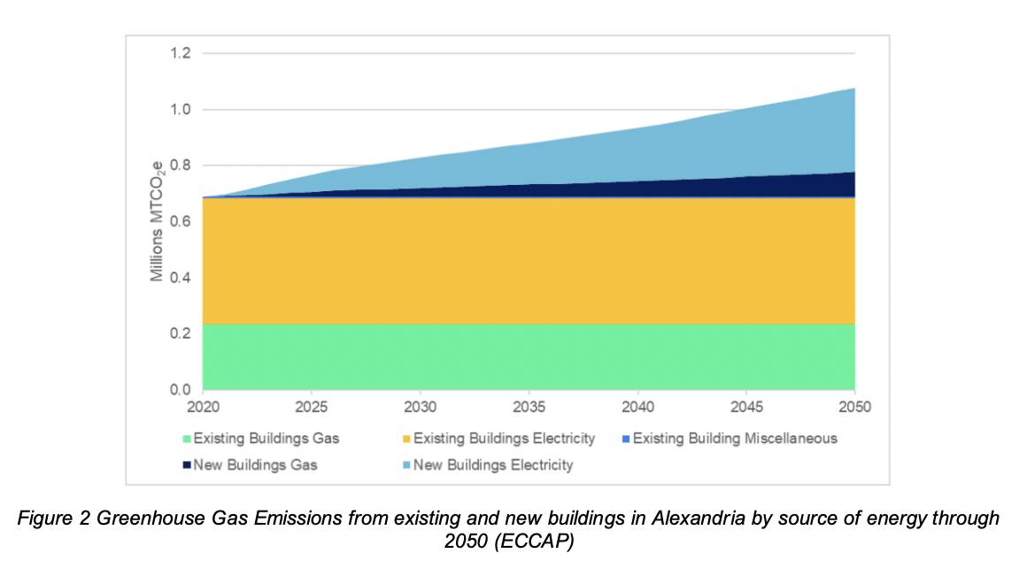 The 99-page proposal, which would become a new chapter of the city’s master plan, targets buildings that account for more than 52% of Alexandria’s greenhouse gas emissions, according to a Metropolitan Washington Council of Governments analysis cited in the document.
