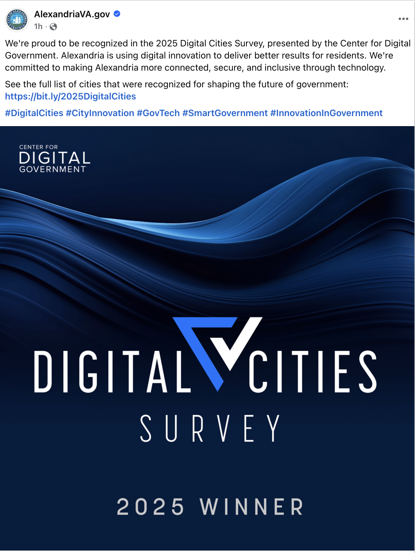 The city announced the recognition on Thursday on its official social media account, stating it is using digital innovation to deliver better results for residents and is committed to making Alexandria more connected, secure, and inclusive through technology.