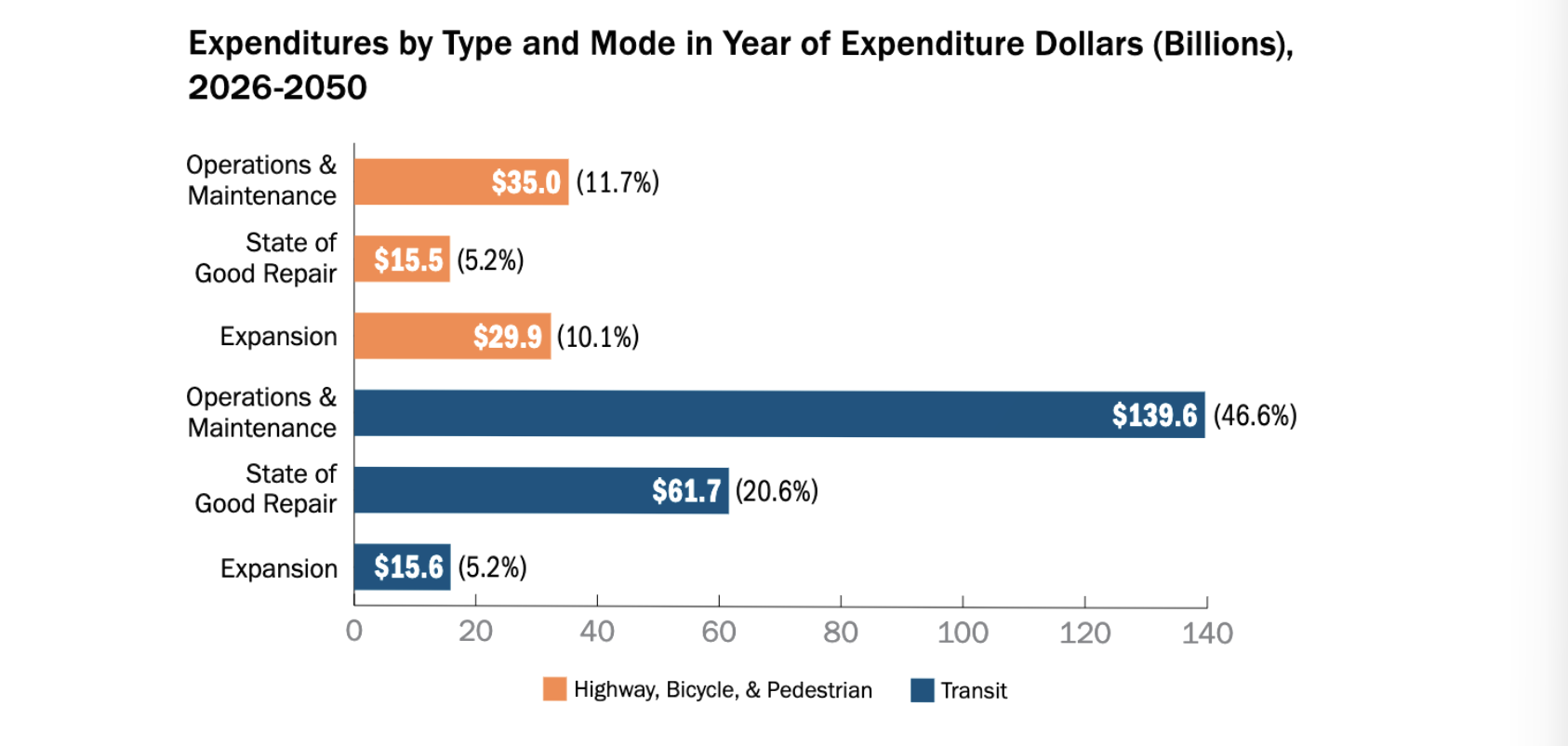 The plan anticipates $299 billion in transportation spending from 2026 through 2050, with 85% of the funds dedicated to operating and maintaining existing infrastructure. Only 15% will be available for system expansion.