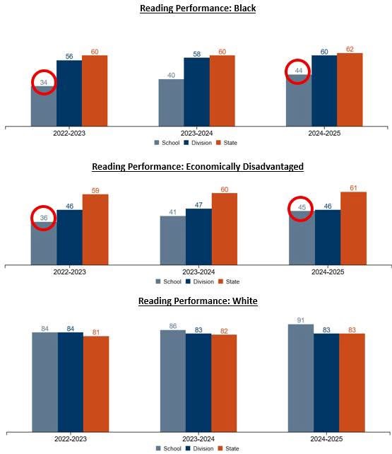Reading pass rates for Black students at the school rose from 34% in 2022-2023 to 44% in 2024-2025, while pass rates for economically disadvantaged students increased from 36% to 45% over the same period.