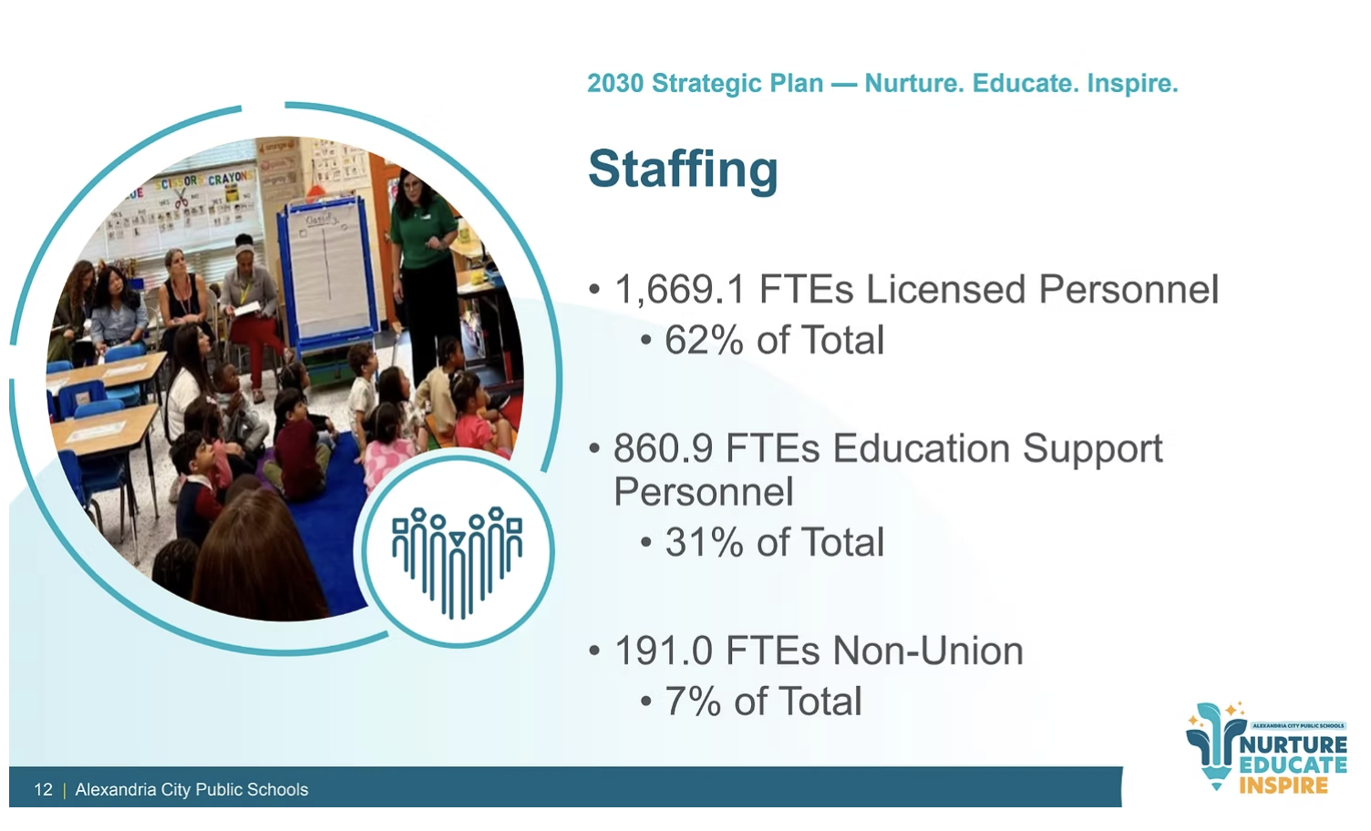 Budget Director Morgan Routt put a number to it. ACPS staffing, he said, represents about 85% of the school division's total budget. The school division itself represents about 30% of the city's overall budget.