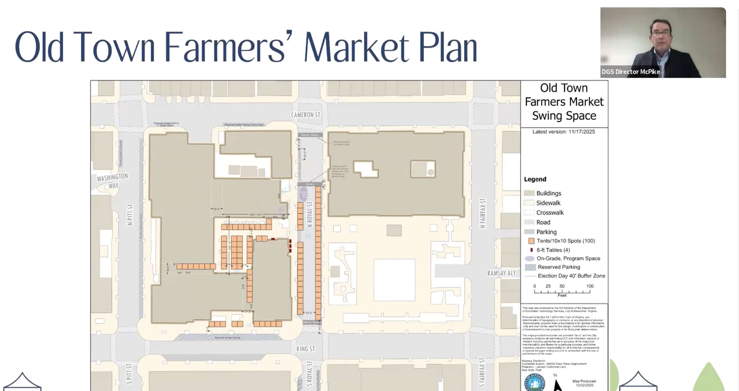 More than 70 vendors will continue operating every Saturday from 7 a.m. to noon in the 100 block of North Royal Street and the courtyard at Tavern Square, according to market organizers. The relocation marks the first time in nearly 60 years that the market will leave Market Square during construction. During the 1960s urban renewal, the market moved multiple times — including to an empty grocery store, inside City Hall, and onto Cameron Street — before returning to Market Square in 1967.