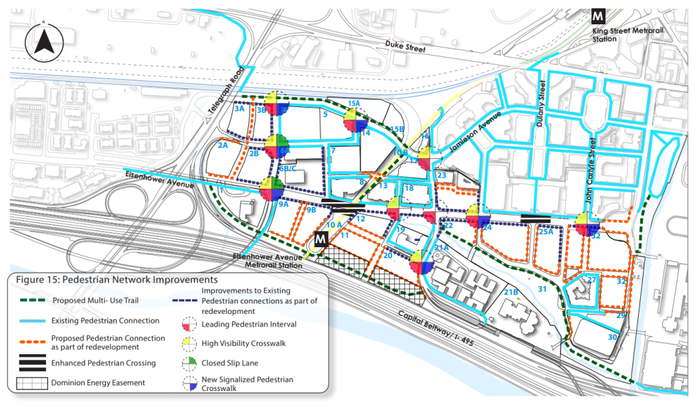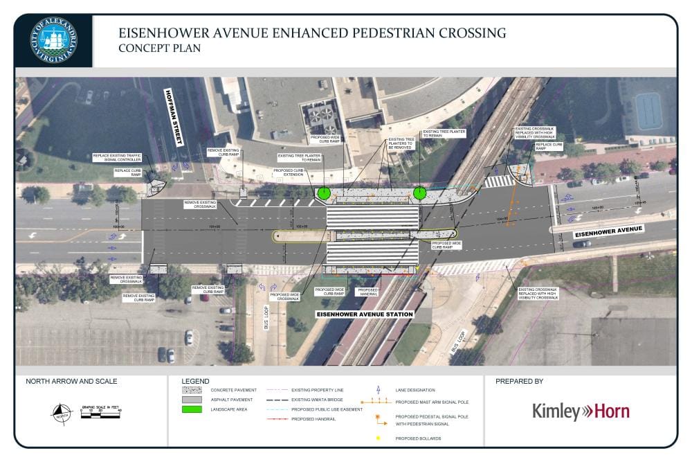 The $2.5 million project will improve pedestrian crossing infrastructure along Eisenhower Avenue immediately adjacent to the Eisenhower Avenue Metrorail Station. The project was identified as a high priority improvement in the Eisenhower East Small Area Plan adopted by City Council on March 14, 2020.