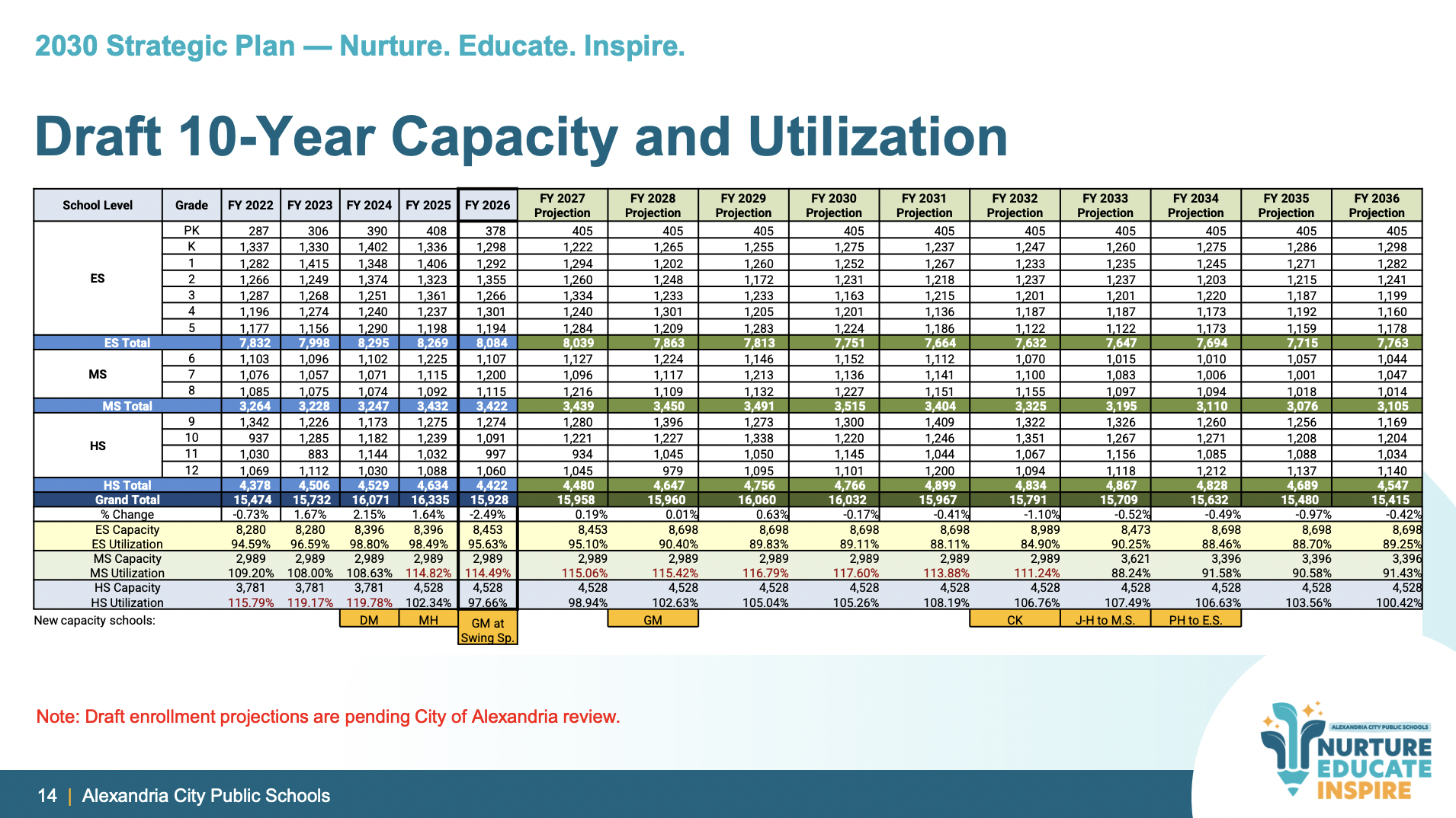Especially since ACPS’ own data shows that the district will have sufficient middle school and elementary capacity after 2031. Spending $40 million to convert schools into middle schools for only three years — when ACPS will not need a third middle school in the out-years — is fiscally irresponsible. These dollars should be directed toward aging facilities, academic supports, and closing learning gaps, not dismantling already modernized schools.
