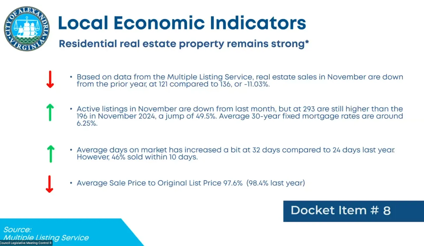That trend carries direct budget implications. More than 60 percent of Alexandria’s operational revenue comes from property taxes, with residential properties accounting for roughly 80 percent of that total.
