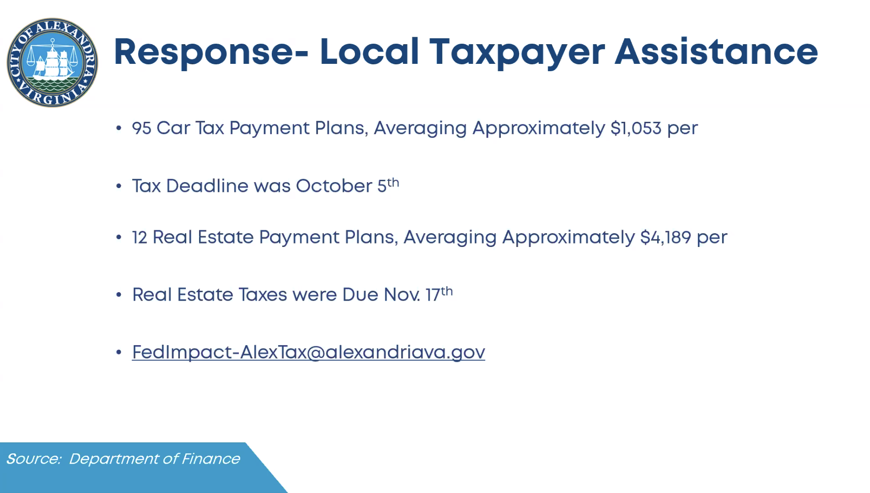 The city has established a dedicated email address — FedImpact-AlexTax@alexandriava.gov — for residents affected by federal workforce changes who need assistance with their tax obligations.