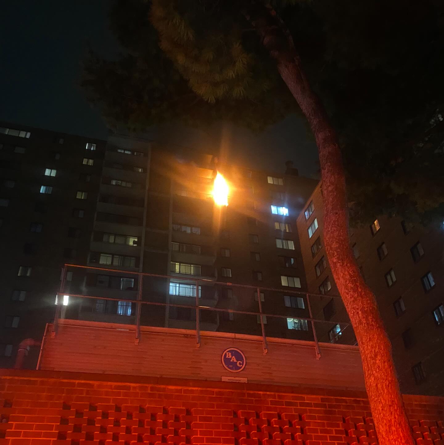 The department shared news of the incident at approximately 10:59 p.m. Crews from Tower 203, operating from Station 208, spotted flames from the 14th floor of the high-rise across from their firehouse as they responded.