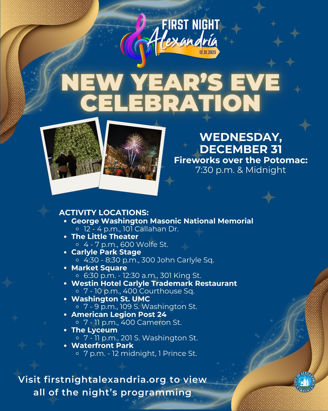For tickets and a full schedule, visit firstnightalexandria.org.