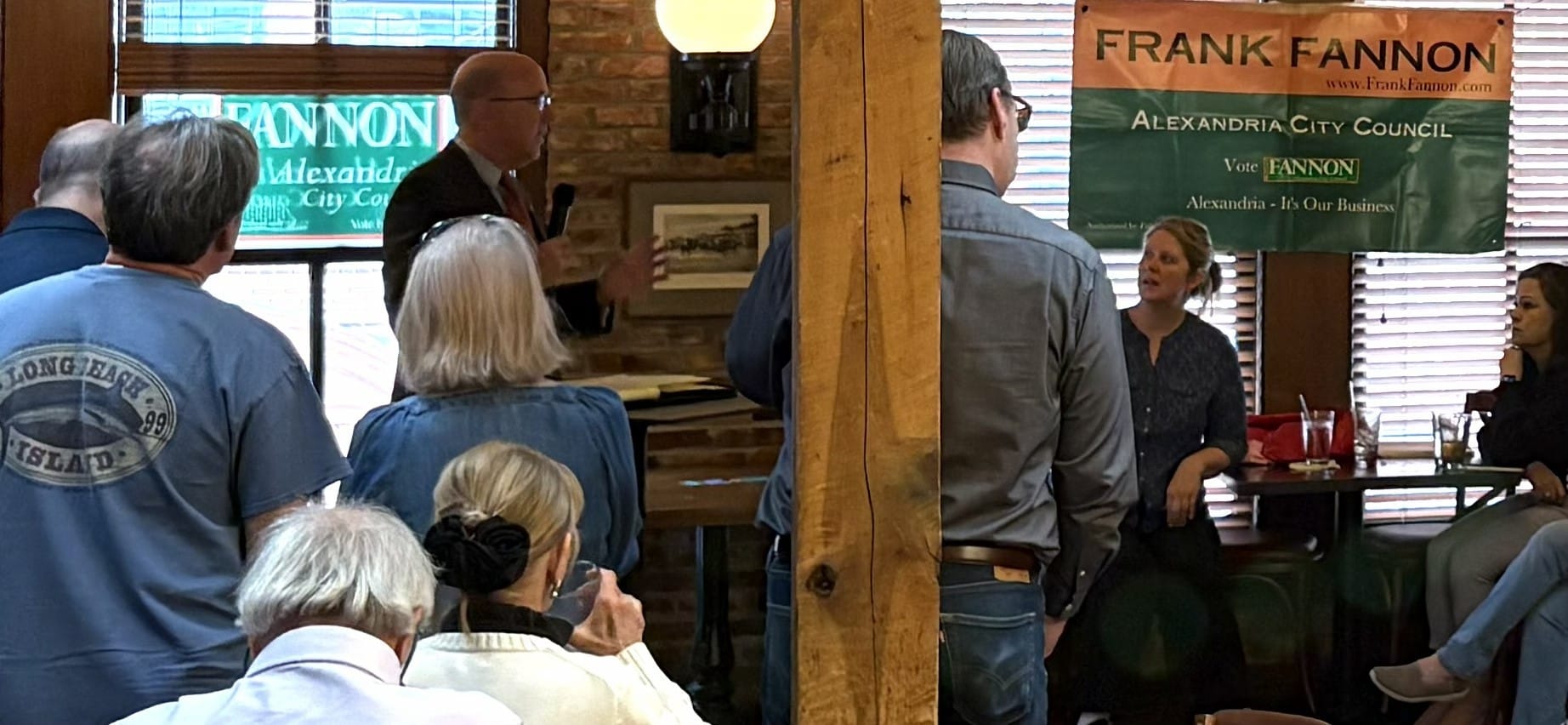 Independent city council candidate Frank Fannon formally kicked off his campaign Sunday afternoon at Union Street Public House, drawing a crowd of supporters and introducing a new policy position: returning Alexandria to a ward-based representation system.