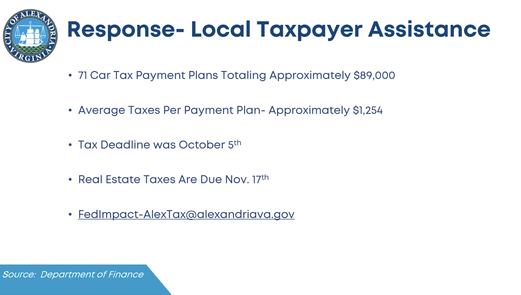 Residents affected by the shutdown can contact FedImpact-AlexTax@alexandriava.gov for assistance.