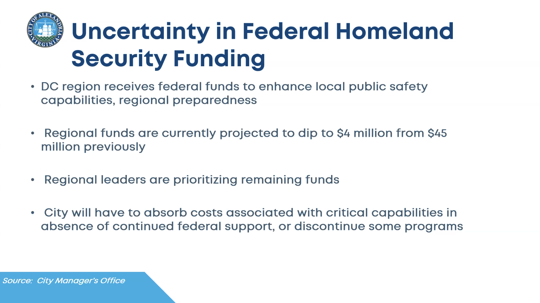 Regional leaders are now prioritizing remaining funds. The city will have to absorb costs associated with critical capabilities in the absence of continued federal support, or discontinue some programs.