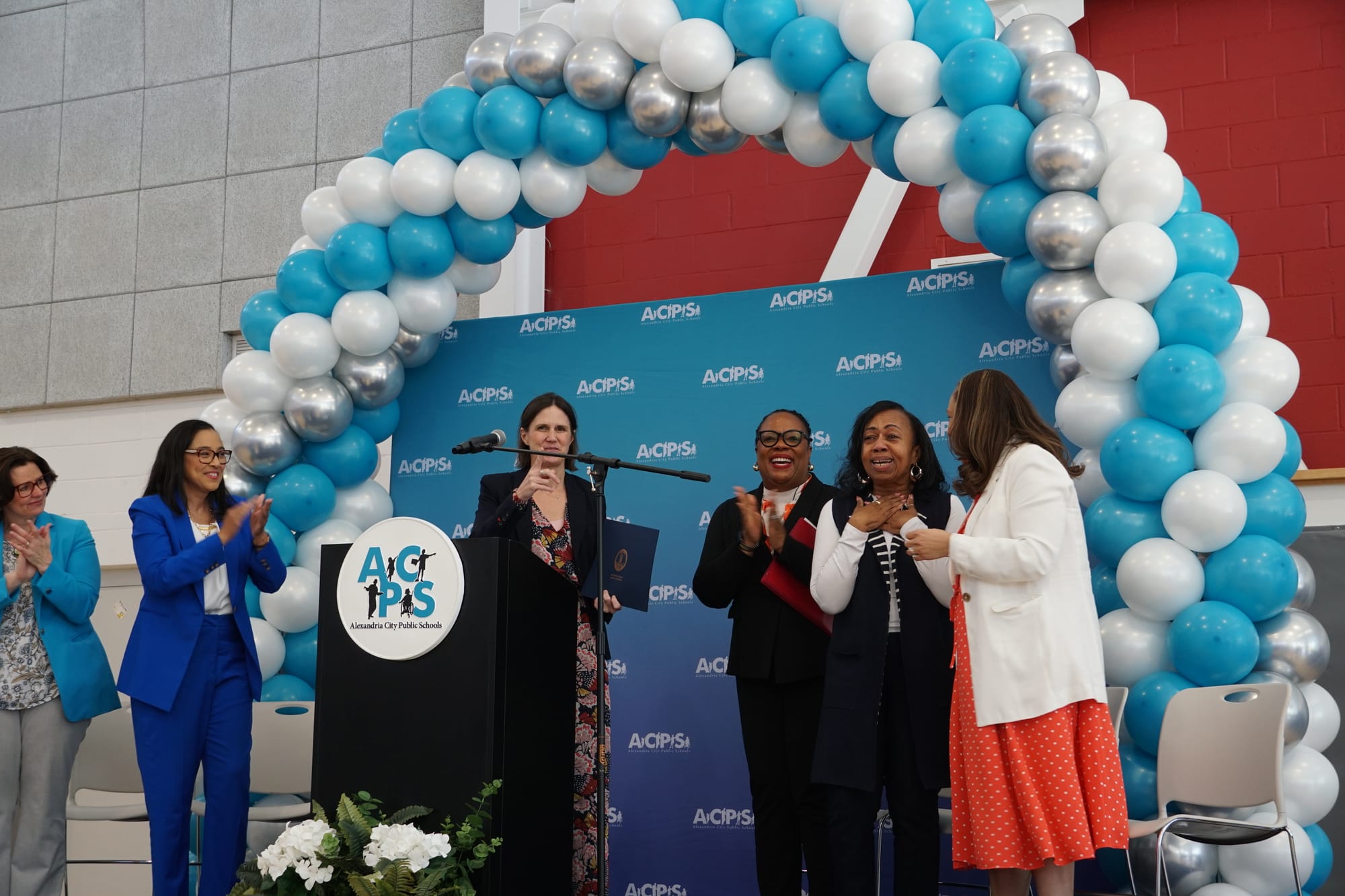 The surprise ceremony came hours before ACPS hosts the state's Commonwealth Listening Tour session Wednesday evening at Alexandria City High School's Minnie Howard Campus, where Conway and Smith are scheduled to hear from students, families and community members about the state of public education.