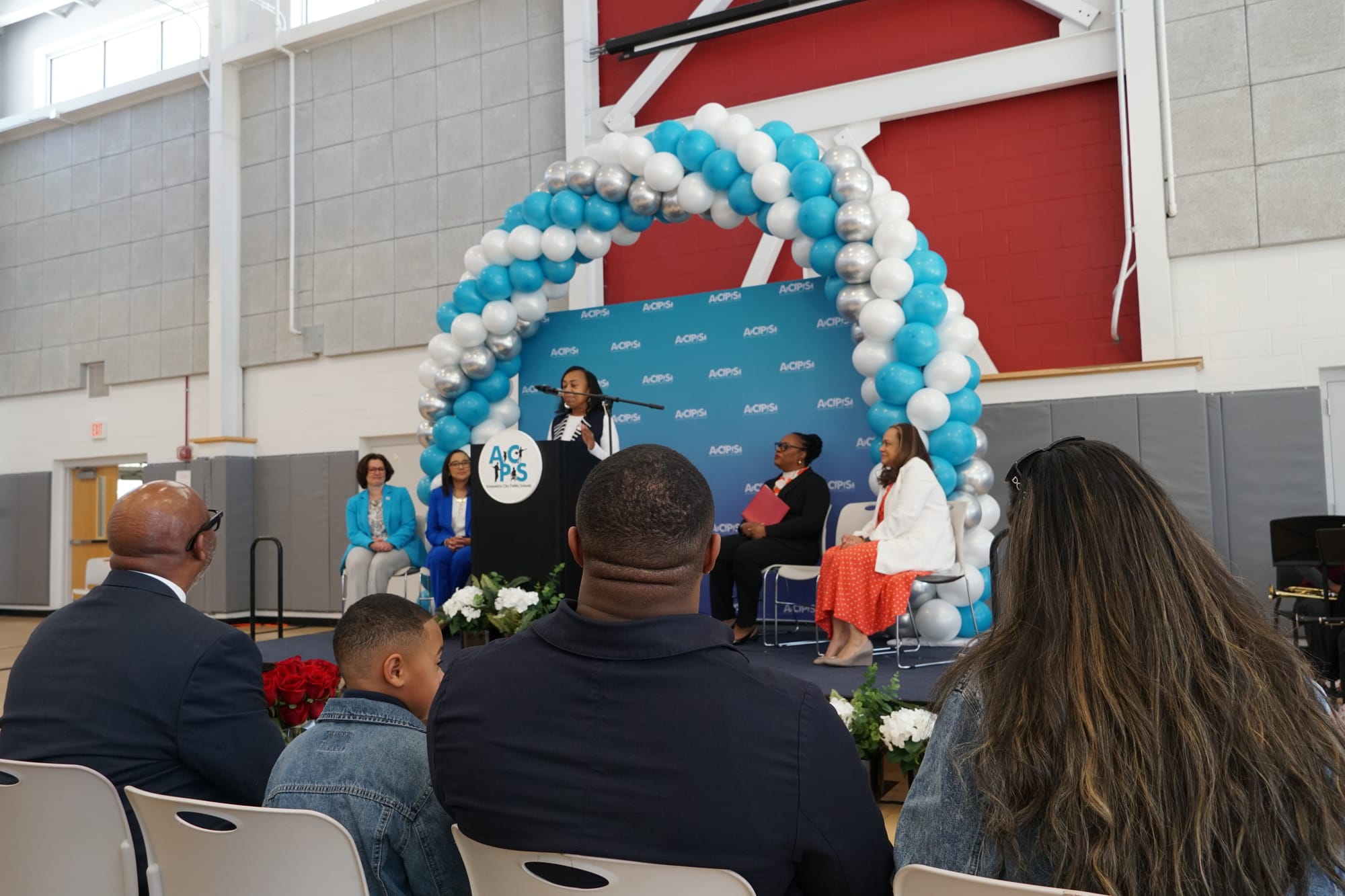 On a crisp, sunny Wednesday afternoon, state education leaders filled the gymnasium at Jefferson-Houston PreK-8 IB School on April 8, where the school's symphonic band — made up of 7th and 8th grade students — set the tone with several performances before the room was brought to its feet for a surprise that had been carefully kept from one person in the building.