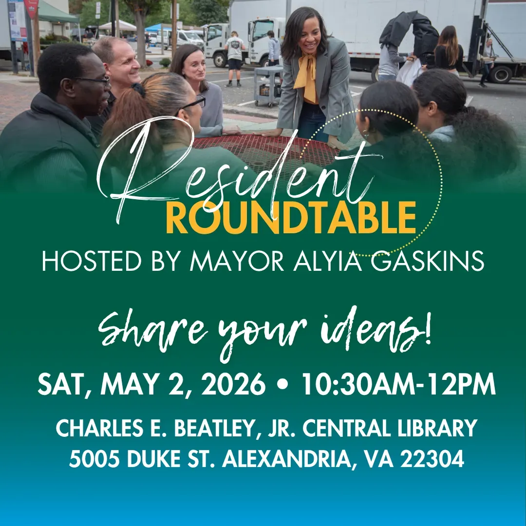 Mayor Alyia Gaskins will host a resident roundtable Saturday at the Charles E. Beatley Jr. Central Library, giving Alexandrians a chance to weigh in directly with the city's top elected official just days after the City Council closes out its budget season.