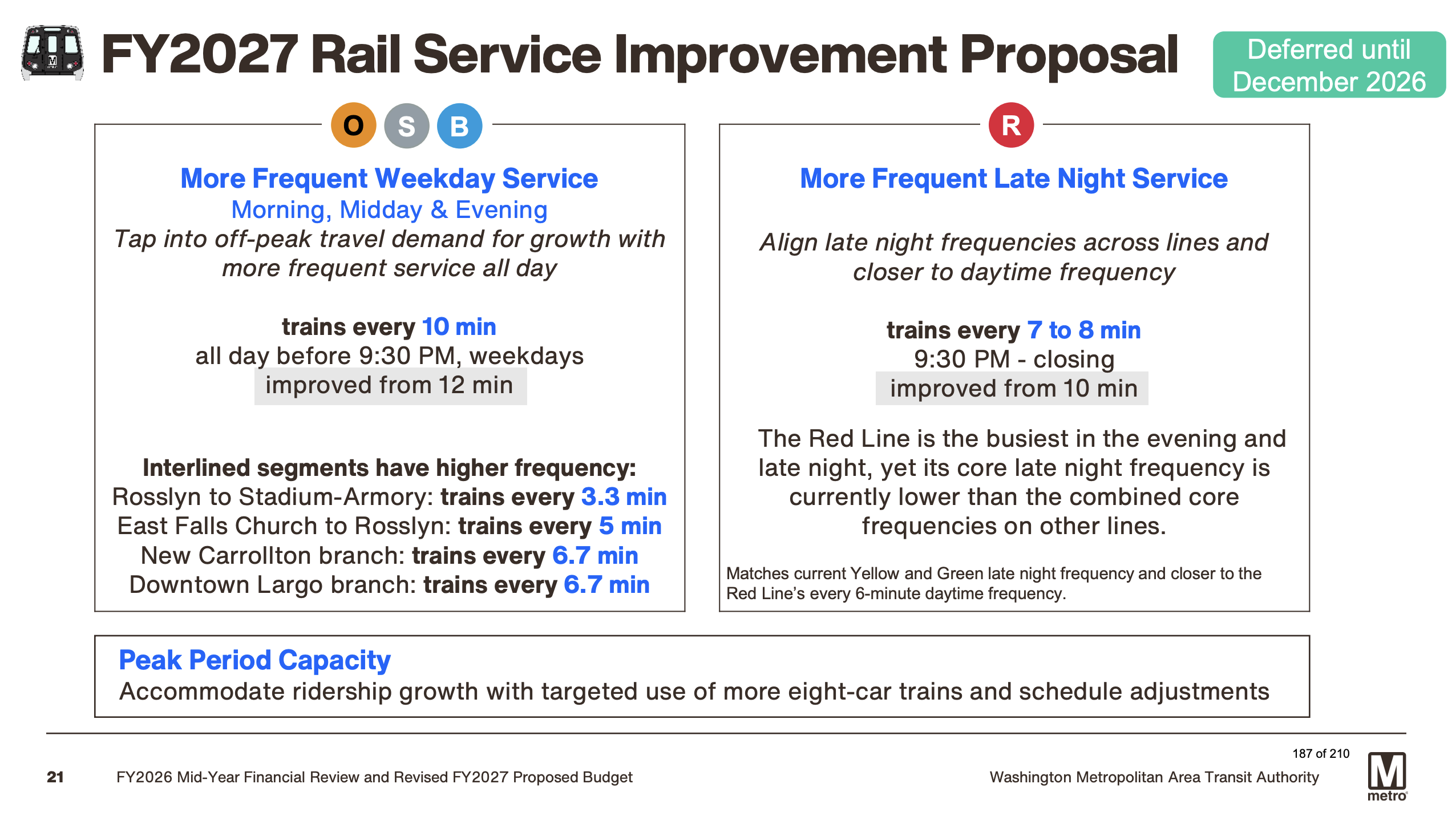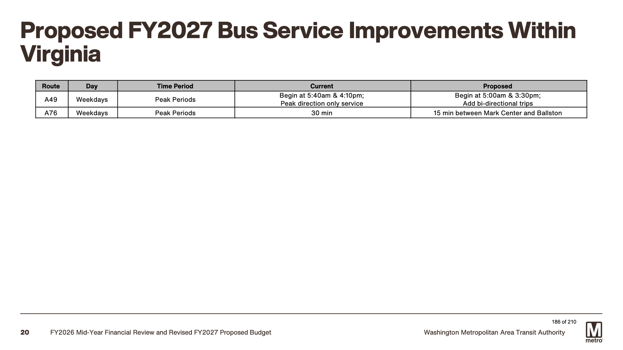The budget document also highlights a mid-year improvement already in place: new commuter peak service launched earlier this fiscal year on Route A29, which improved access from Alexandria and Arlington to downtown Washington.