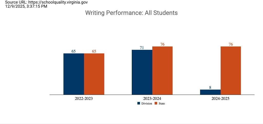 “The state’s new accountability system raises the bar for all school divisions by emphasizing high expectations for every student, which has always been our focus,” she wrote. “This shift does not signal a decline in performance, but an intentional strengthening to ensure students are challenged and engage in rigorous, high-quality instruction.”