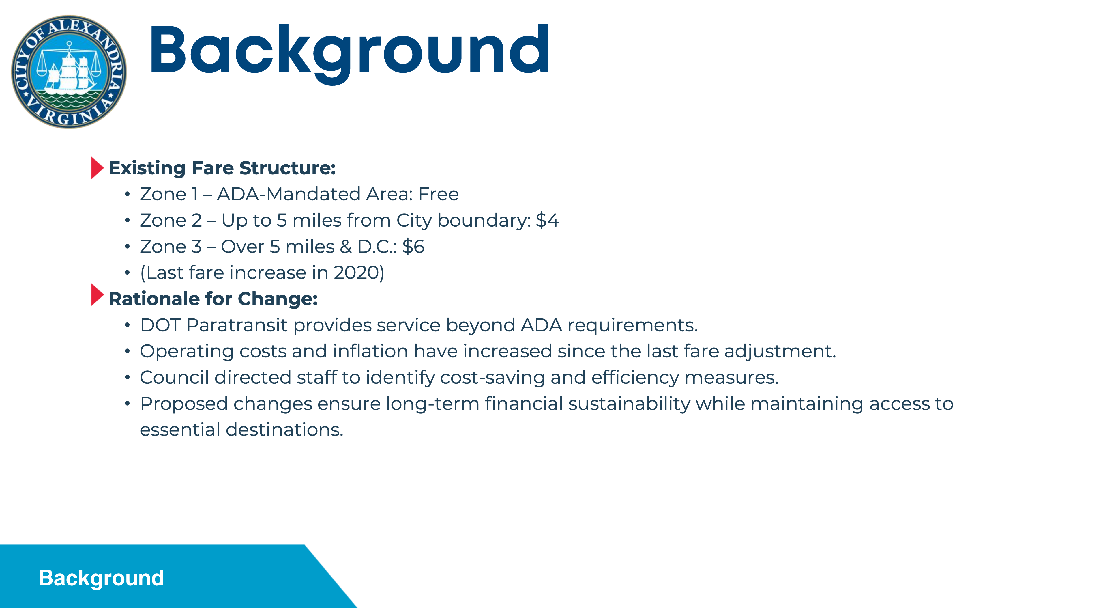 The city has provided service beyond minimum ADA requirements for decades, offering broader geographic coverage, including service to Washington, D.C., which was added in 2020. The last fare increase also occurred in 2020, when fares were raised by $1 across zones 2 and 3.
