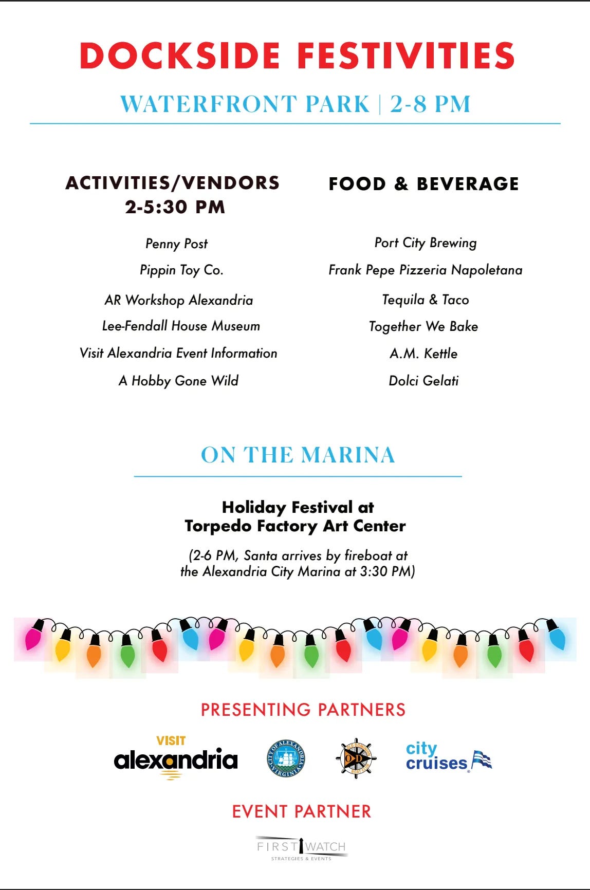 2–6 p.m.: Holiday Festival at Torpedo Factory Art Center (105 N. Union St.).