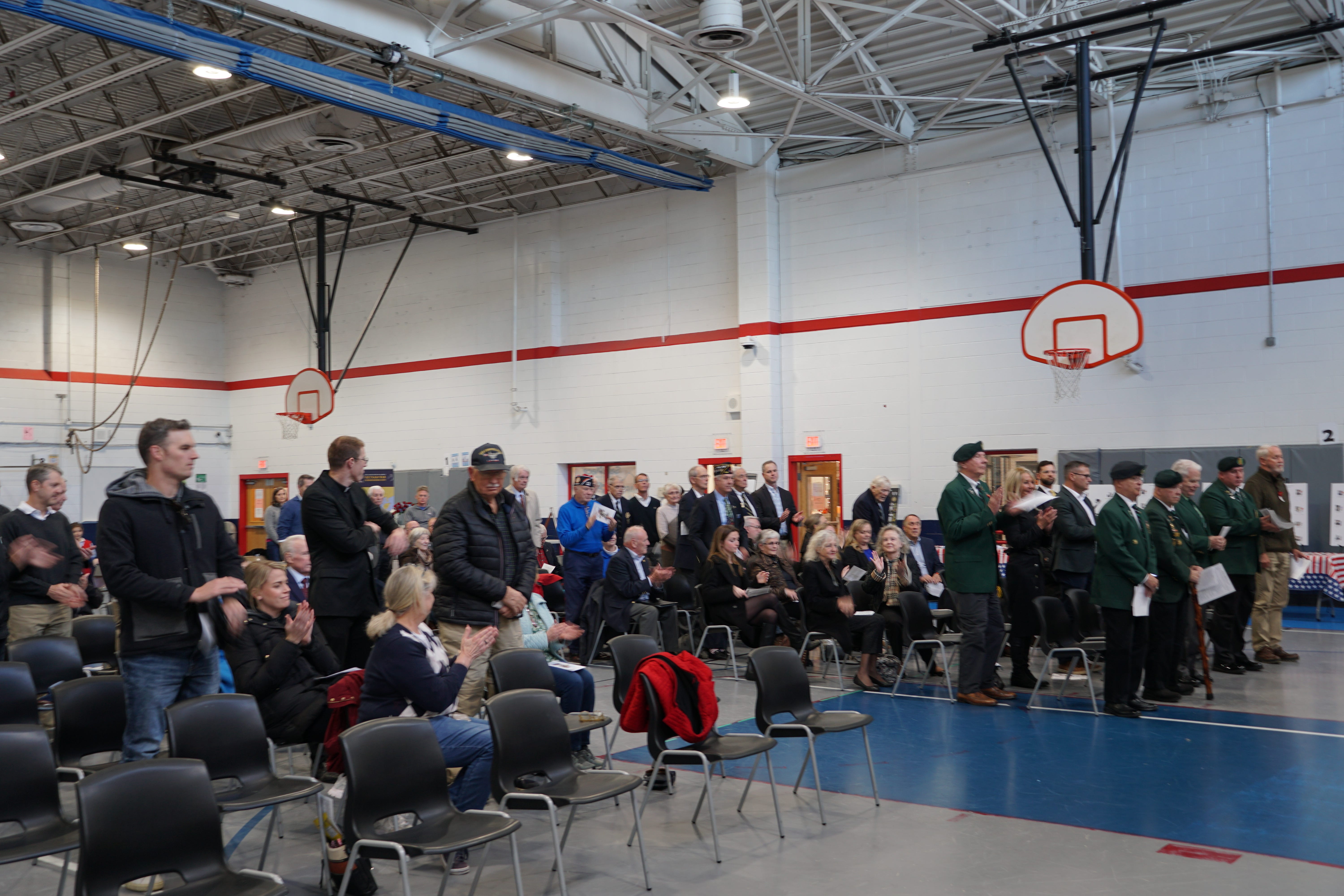 The ceremony recognized all branches of the military, with veterans standing as their service was called. The recognition included the Army, which celebrated its 250th anniversary this year, and the Marine Corps, which celebrated its birthday the day before the ceremony, along with the Navy, Air Force, Space Force, and Coast Guard.