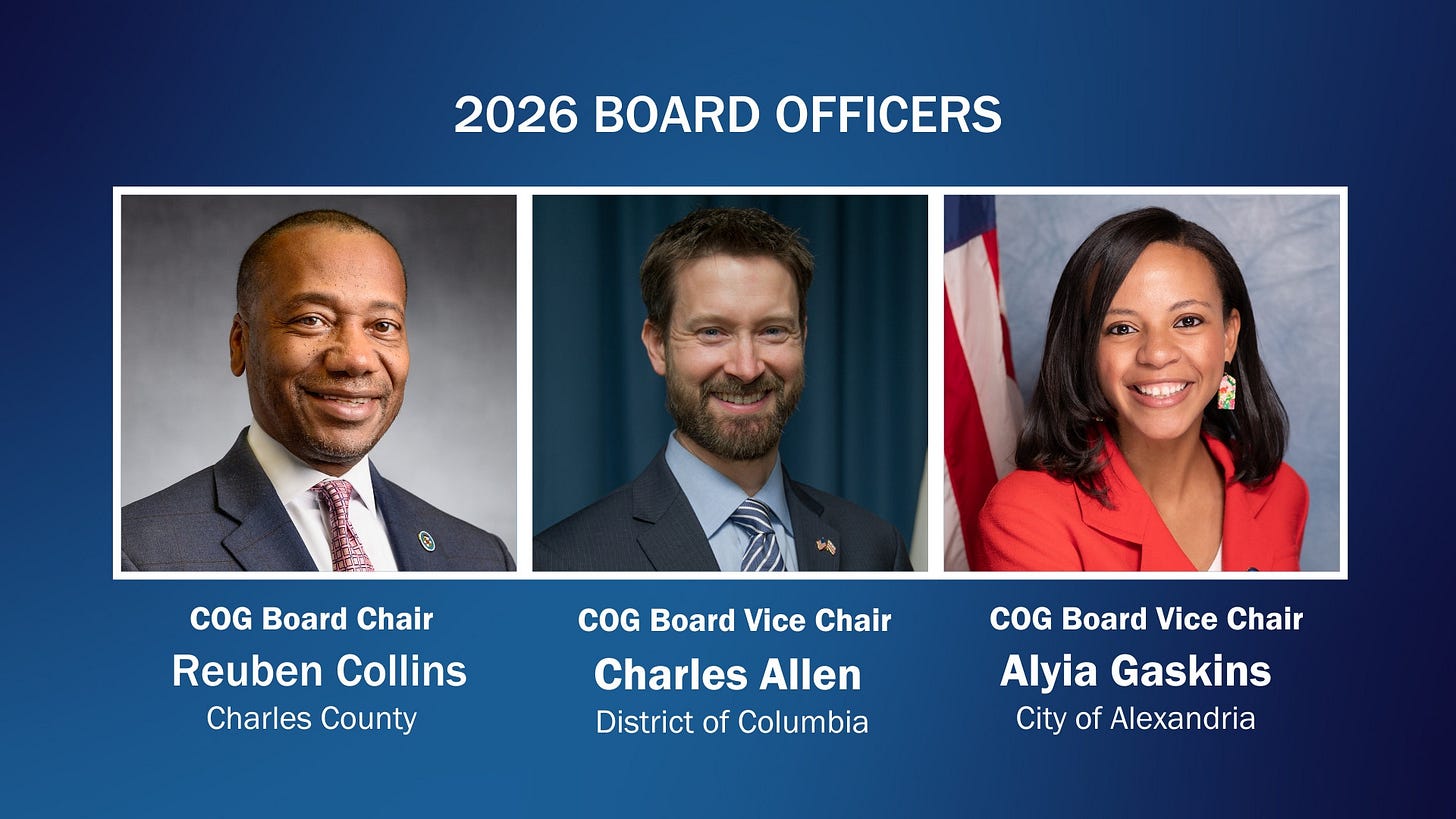 Gaskins will serve alongside D.C. Councilmember Charles Allen as vice chair. Charles County Commissioner President Reuben Collins was elected board chair, the first representative from Charles County to hold the position.