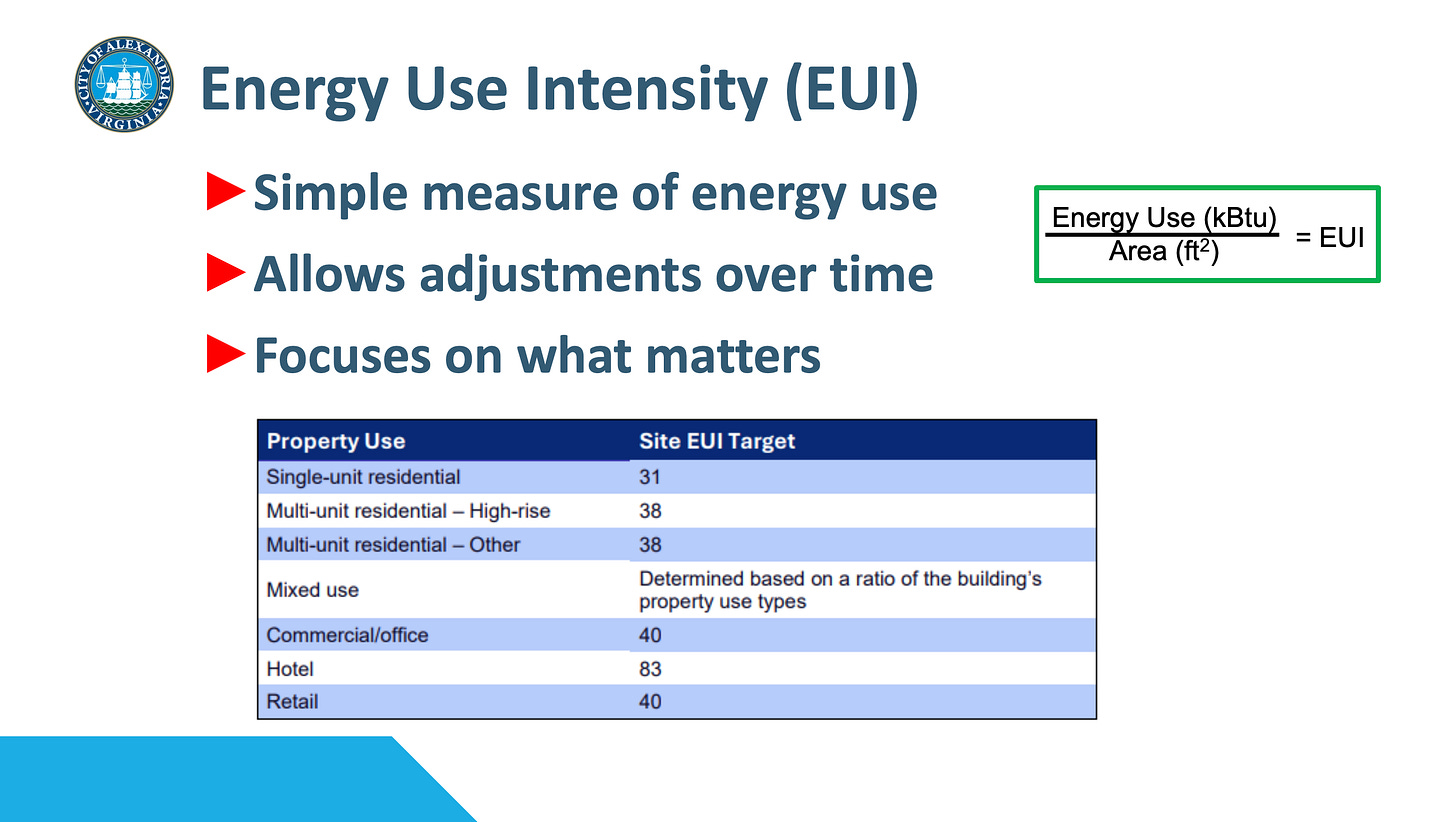 Energy use intensity, or EUI, measures how much energy a building uses per square foot. The commission’s decision to set the multifamily target at 30 rather than the staff’s recommended 38 brings Alexandria closer to what several commissioners described as necessary to meet the city’s climate goals of reducing emissions 50% by 2030 and 80% to 100% by 2050.