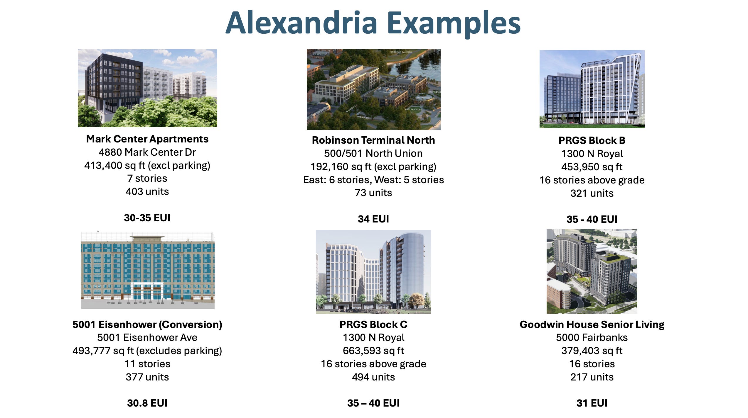 “Nothing that they’ve done in the city is anywhere close to 38,” Gibbs said of Paradigm’s existing buildings. “And they’re very concerned that specifically that you are disincentivizing high-density development in the city of Alexandria because EUIs in the high-density buildings are much harder to achieve.”