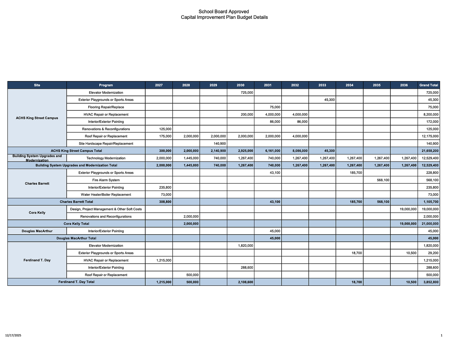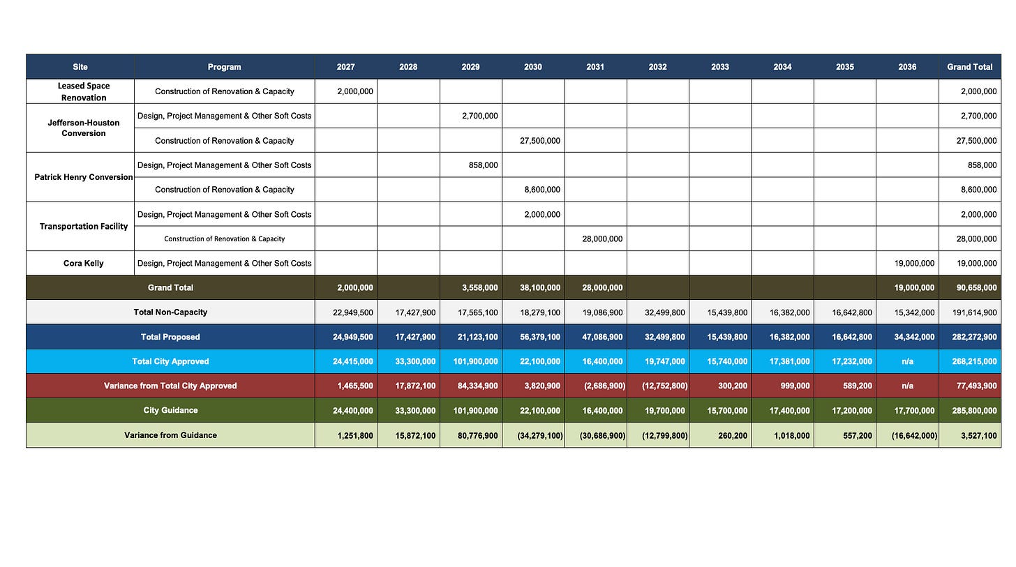 The plan comes in under City Manager James Parajon’s $285.8 million spending guidance, a significant reduction from Superintendent Melanie Kay-Wyatt’s original $340.4 million proposal in November, which included $105 million for the Cora Kelly modernization beginning in 2028.