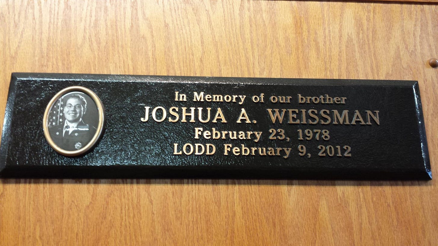 The city dedicated the Joshua A. Weissman Professional Development Center, 1108 Jefferson St., in his honor on February 8, 2013. The plaque reads: “In honor of his achievements in the field of Emergency Medical Services and his meritorious service as an educator, mentor, and friend.”