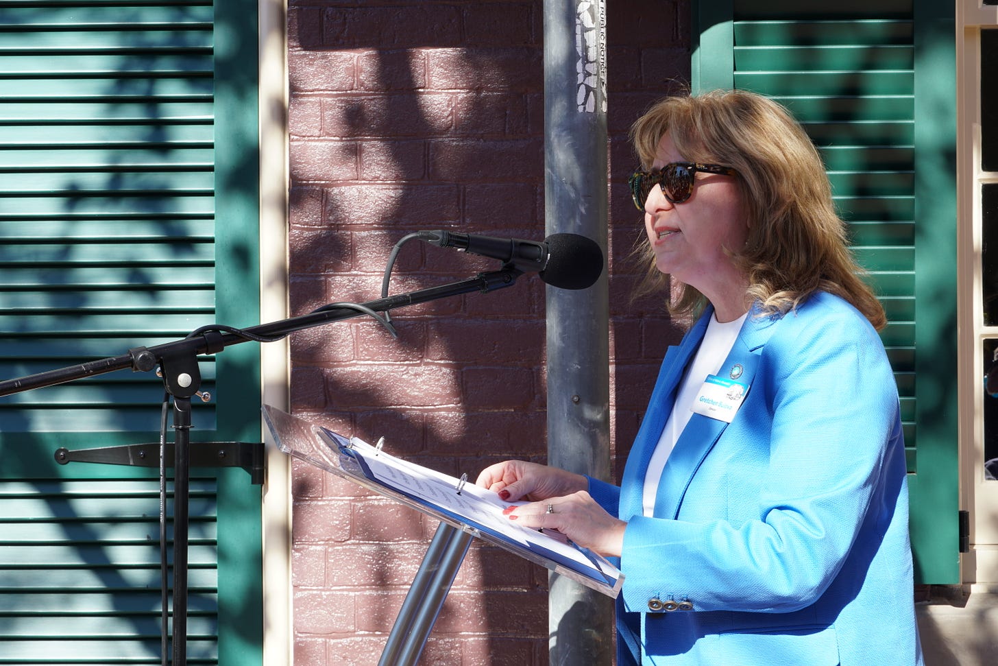 About 100 people gathered Saturday at the Freedom House Museum for a ribbon-cutting ceremony marking the completion of a 16-month exterior restoration project.