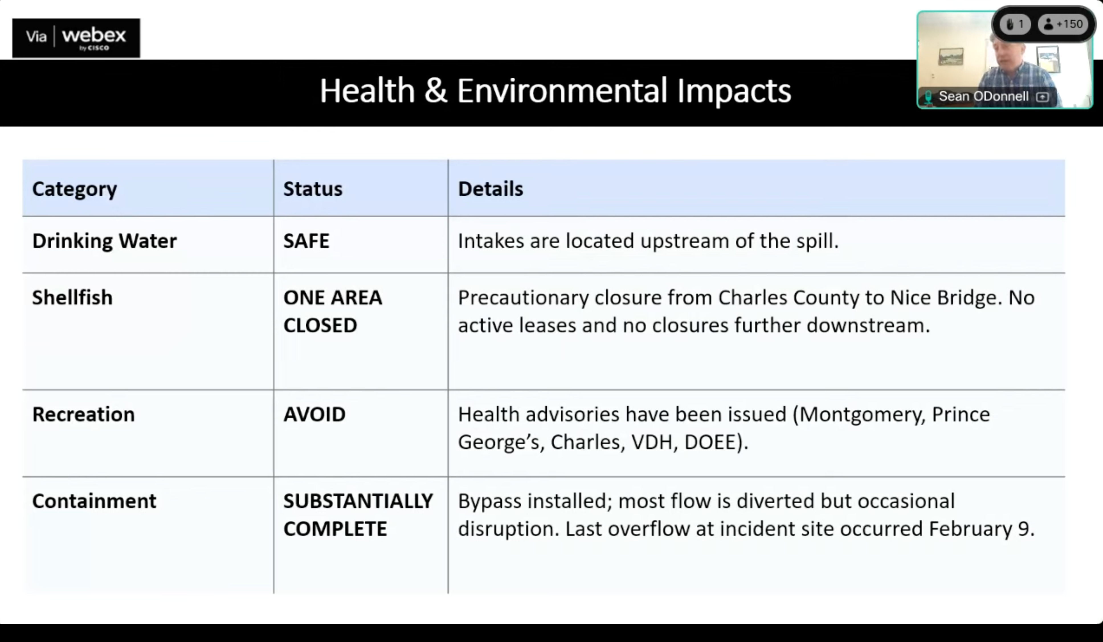 More than 170 people joined a virtual briefing on Monday, convened by the Metropolitan Washington Council of Governments (COG) on the Potomac Interceptor sewer collapse, including several COG Board members, agency staff, and members of the public. The 90-minute session was the first regional public accounting of a crisis now in its sixth week. COG Board Vice Chair Mayor Alyia Gaskins was among those present.