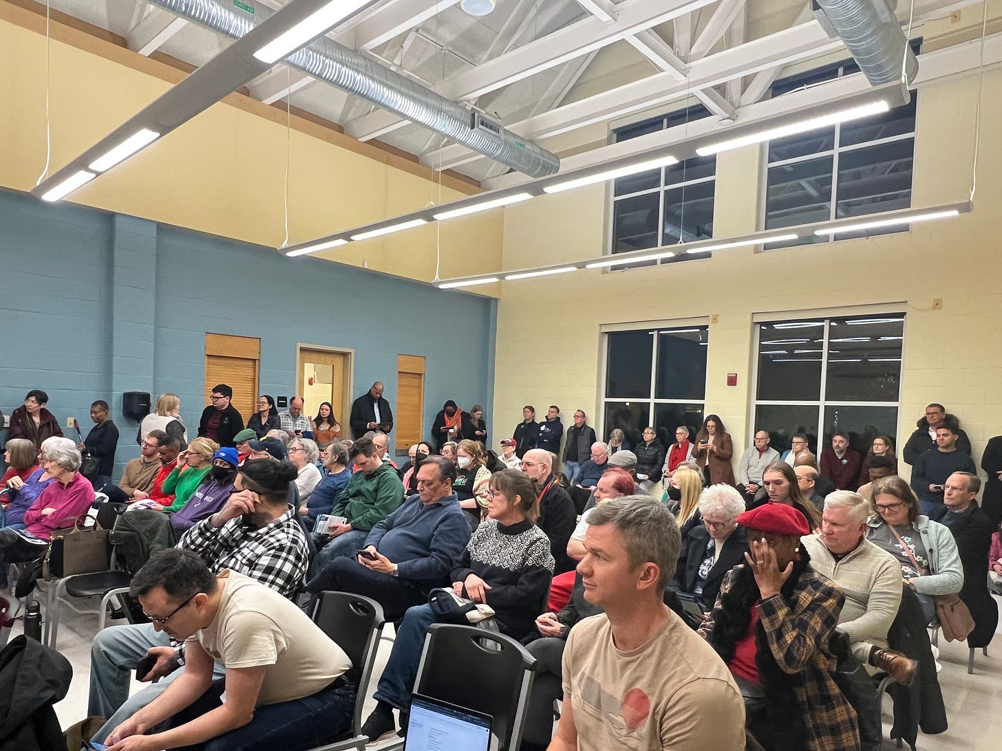 “This is democracy. I am so proud of all of you for caring so much and filling this room and showing you care about democracy,” he said. “This is what it looks like.”