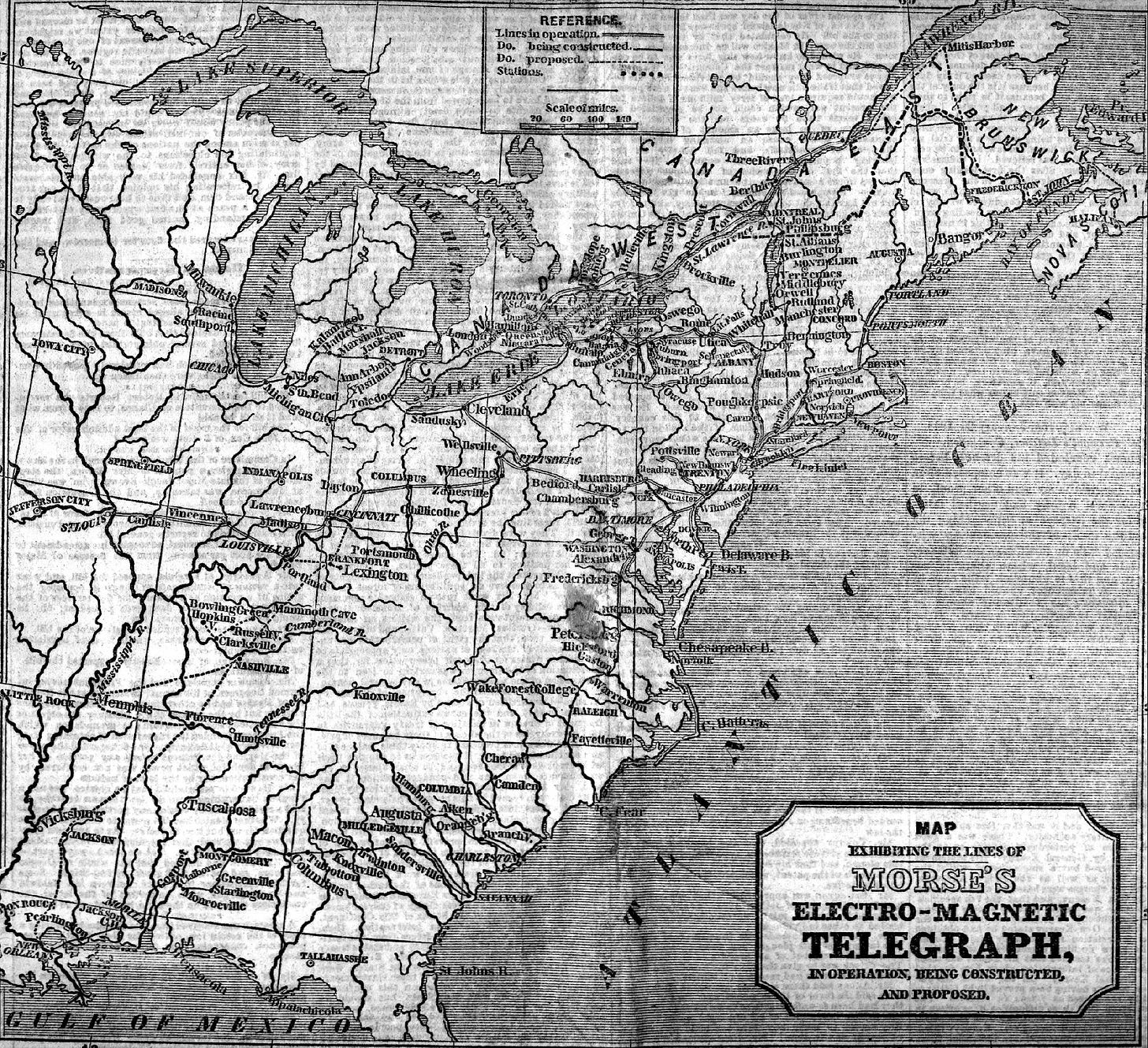 “On November 13, 1873, the Alexandria City Council granted permission to the Electro-Magnetic Telegraph Company, created in 1845 by inventor Samuel Morse, to run its lines through Alexandria providing instant communication for the first time from New York all the way to Richmond. Morse was a well-respected American painter, who in 1825 was commissioned to do a portrait of the Marquis de Lafayette in Washington, D.C. Halfway through completing the artwork he received word that his wife was seriously ill at their home in New Haven, Connecticut. He left for New England at once, only to find her dead and buried upon his arrival. Thereafter he decided to commit his endeavors to creating a device which could convey important communication instantaneously, without reliance on the daily mail. After witnessing a series of electro-magnetic experiments, he later developed the concept of the single-wire telegraph and the Morse code system of telegraphy.”