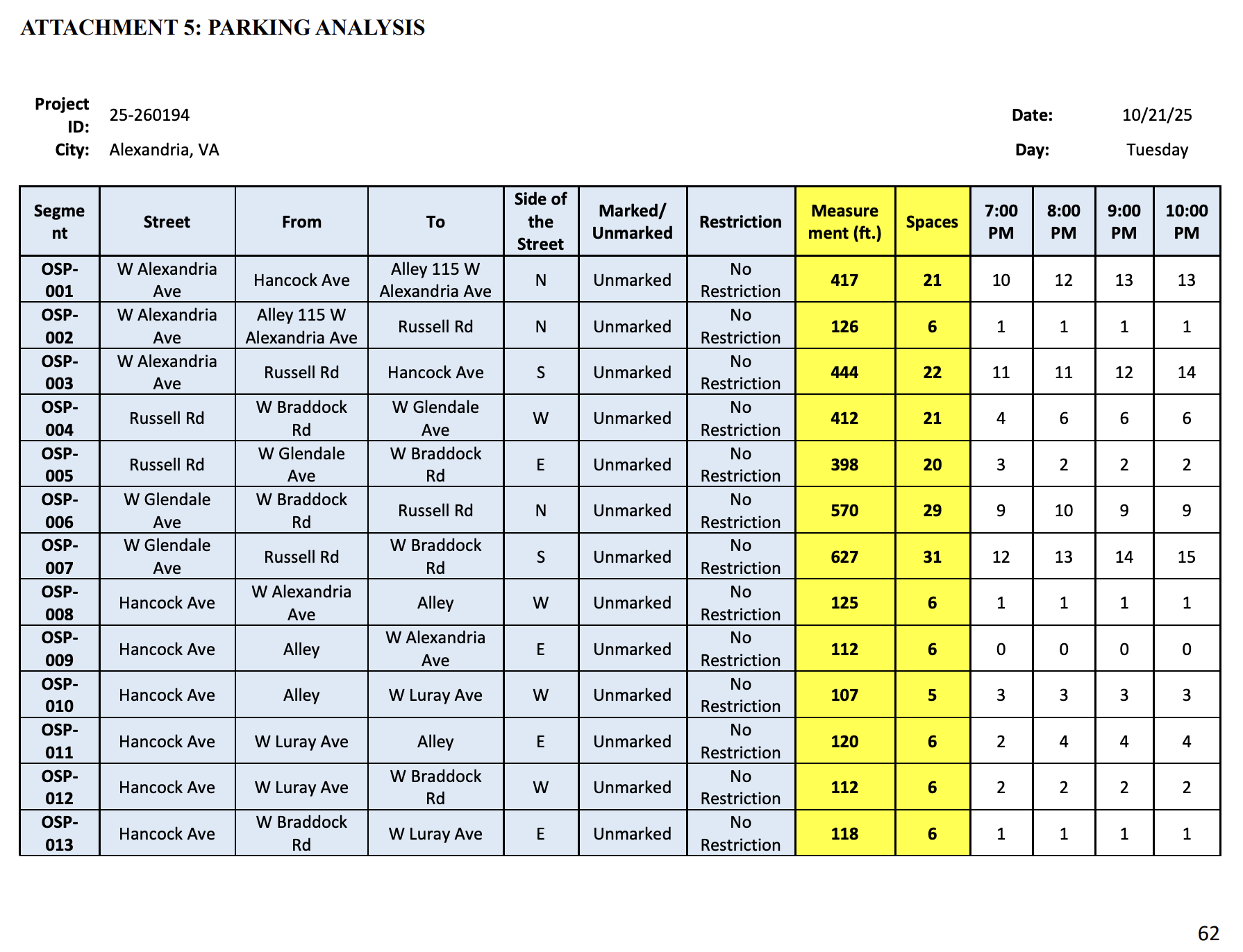 - 105 parking spaces exist on Braddock between Russell and Mount Vernon.