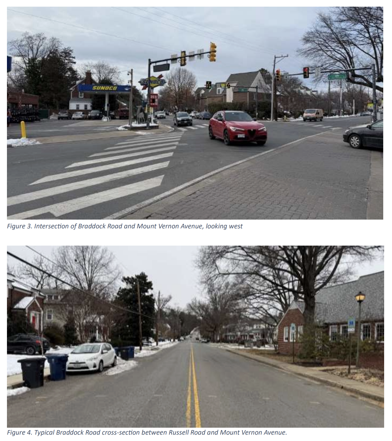 - Mount Vernon Avenue at Braddock Road experiences the most congestion, particularly westbound during PM peak hours, but “drivers were typically observed to make it through the intersection in one signal cycle”.