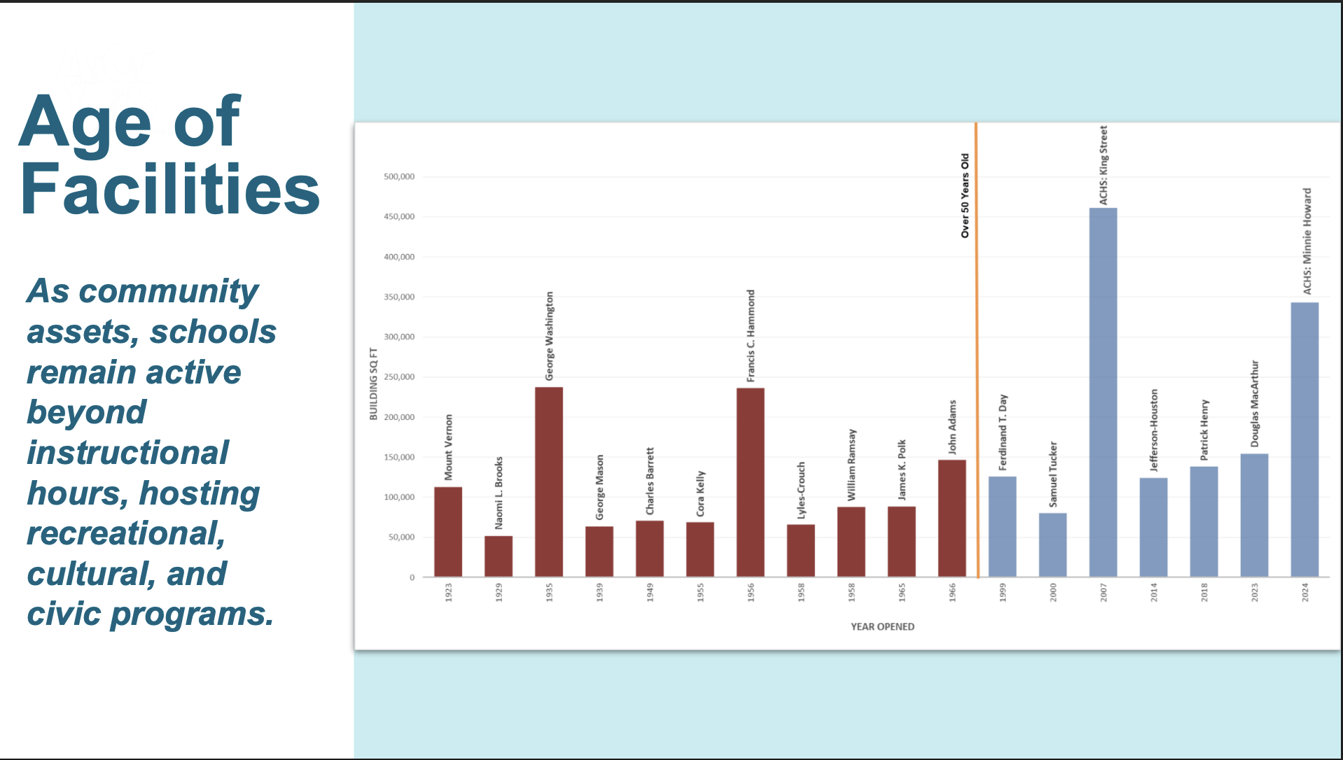 The city recommended in October that ACPS maintain funding at existing or lower levels for fiscal years 2027-2036 and that any new major school renovation or replacement projects include design funding no earlier than fiscal year 2034.