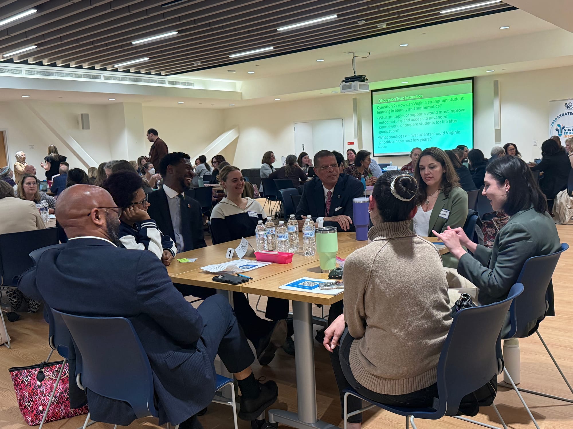 The evening moved through six structured discussion rounds of approximately eight minutes each, covering general feedback on what is and isn't working in schools; literacy and math instruction; accountability and accreditation, with a focus on the first year of Virginia's new School Performance and Support Framework; workforce recruitment and retention; school operations including schedules, transportation and lunch; and how VDOE can better partner with schools and communities.