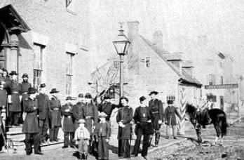 On this day in 1874, the old George’s Tavern on the northwest corner of Cameron and North Royal streets caught fire and was severely damaged. The building, also known as the Old English House, can be seen in the background of Civil War-era photos of Union soldiers in front of Gadsby’s Tavern.