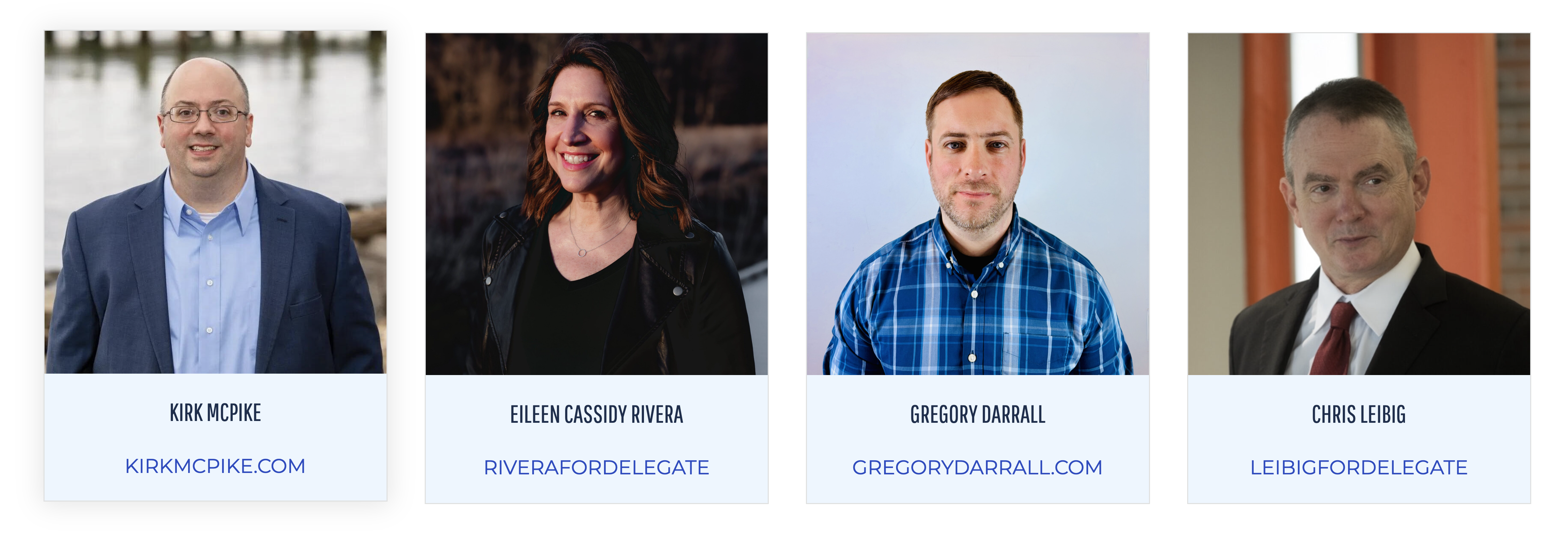 In ballot order, the candidates are: Kirk McPike, Eileen Cassidy Rivera, Greg Darrall, and Chris Leibig. Only residents registered to vote in House District 5 may participate. Check your district at whosmy.virginiageneralassembly.gov. Voters will be asked to affirm their identity as Democrats before casting a ballot.