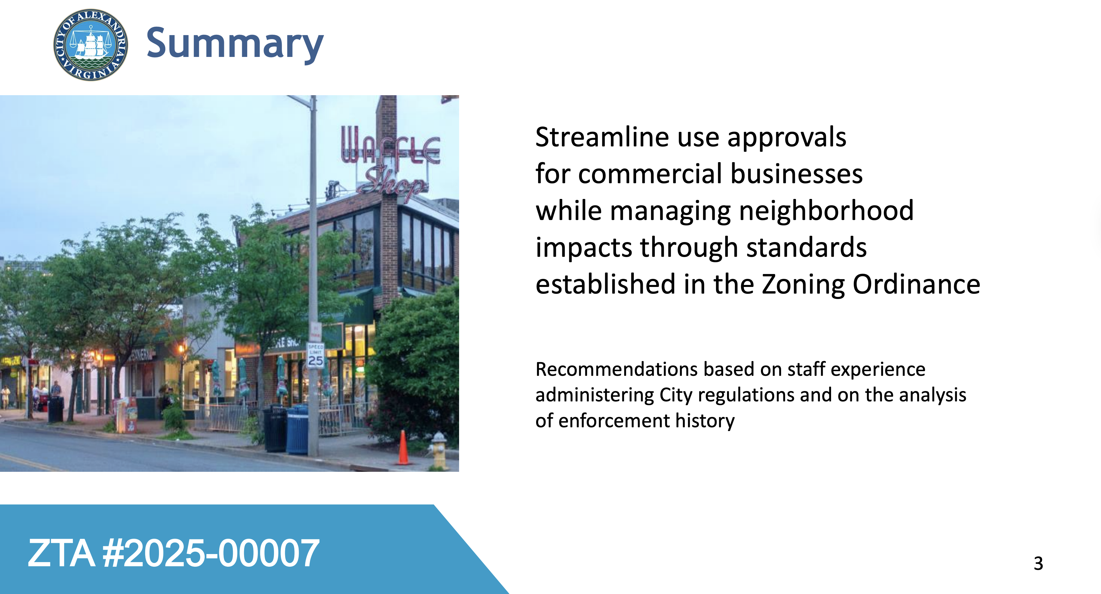 “What we’re seeing are efficiencies, transparencies, and elements of fairness,” Chair Melissa McMahon said, praising the amendments for establishing consistent standards businesses can easily find rather than requirements buried in individual special use permits. The changes also allow barber shops, salons and spas with more than 30 feet of frontage in the King Street and Mount Vernon overlay zones by right.