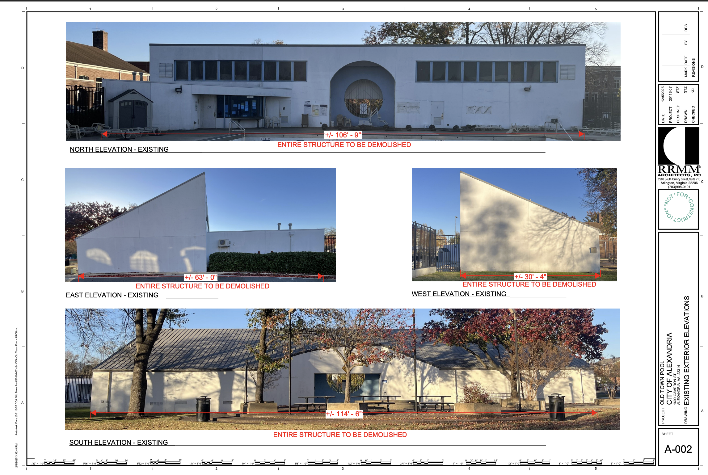 The project calls for complete demolition of the existing pool, bathhouse, and equipment building — constructed in the mid-1970s — and replacement with a new pool and one-story bathhouse. Archaeological records show a community pool has occupied the site since the 1920s.