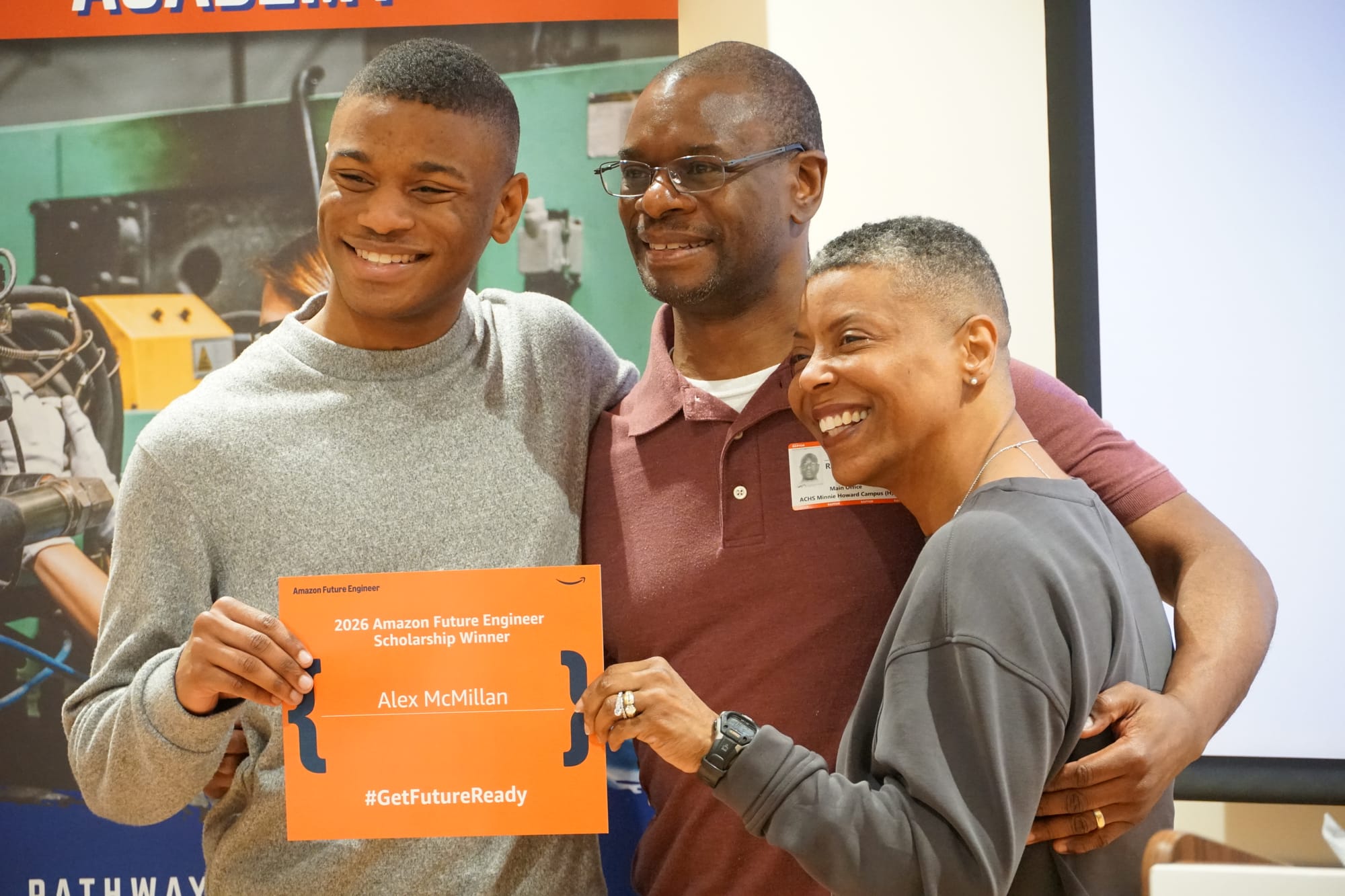 His gratitude extended to the people who helped him get there. "I just wanted to thank Amazon for giving me this opportunity. I'm grateful for all the people that have been with me along the way — my parents, my teachers, my counselor." He singled out his computer science teacher, Mr. Johnson, and his school counselor, Ms. West. "She's supported me throughout my high school."