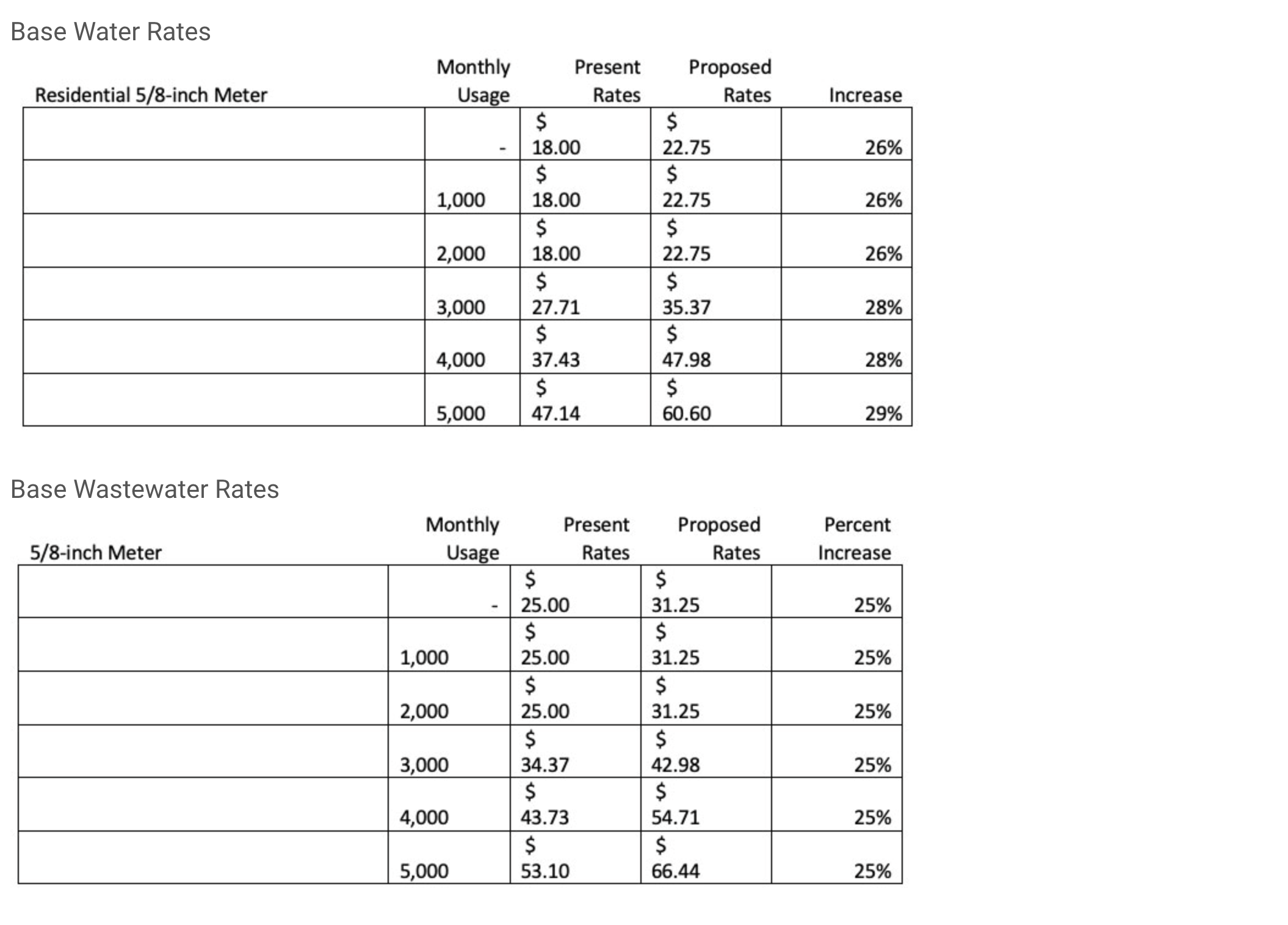 A household using 4,000 gallons of water monthly would see its water bills rise from $37.43 to $47.98.