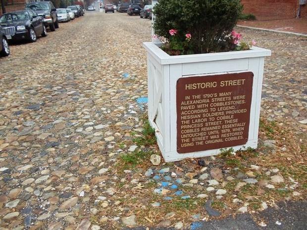 On December 9, 1789, the General Assembly of Virginia authorized Alexandria’s Trustees to raise by lottery a sum, not to exceed £1,500, to be used for paving the most frequently used streets in the town. Although only a few historic cobblestone streets are still visible in Old Town, many other major thoroughfares still retain the original cobblestones hidden under multiple layers of asphalt. The photo was taken in 2010 on Queen Street, in front of the Barrett Branch Library.